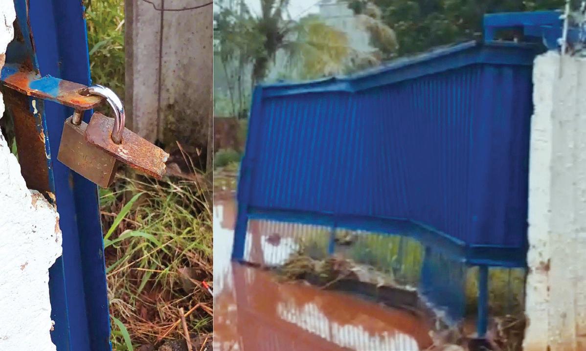 Neste domingo (8), o local estava vazio, a chuva quebrou o cadeado e arrebentou o portão de ferro.