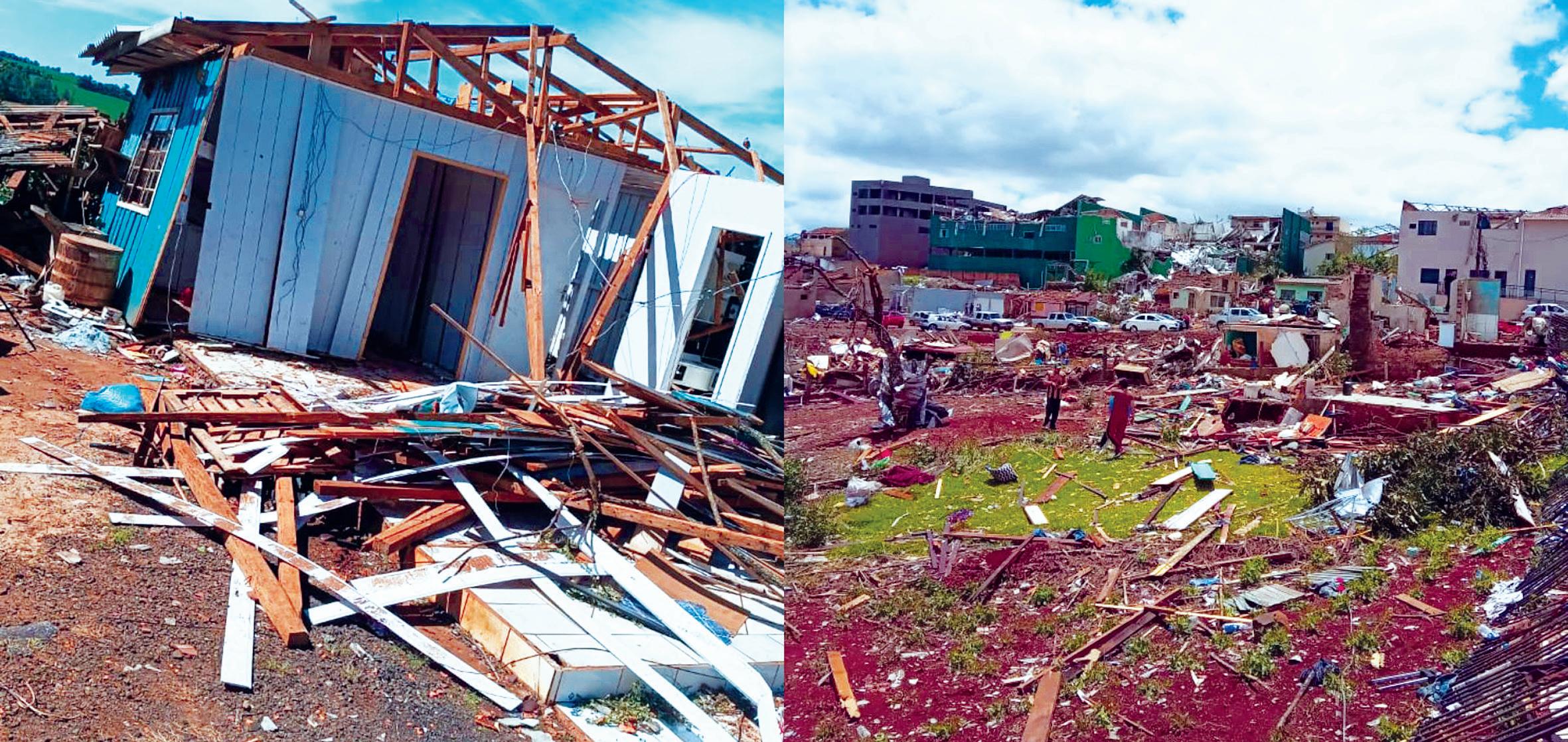 (PR) quando o fenômeno atingiu Rio Bonito do Iguaçu. “O tornado passou do lado da minha casa, meu filho estava sozi-