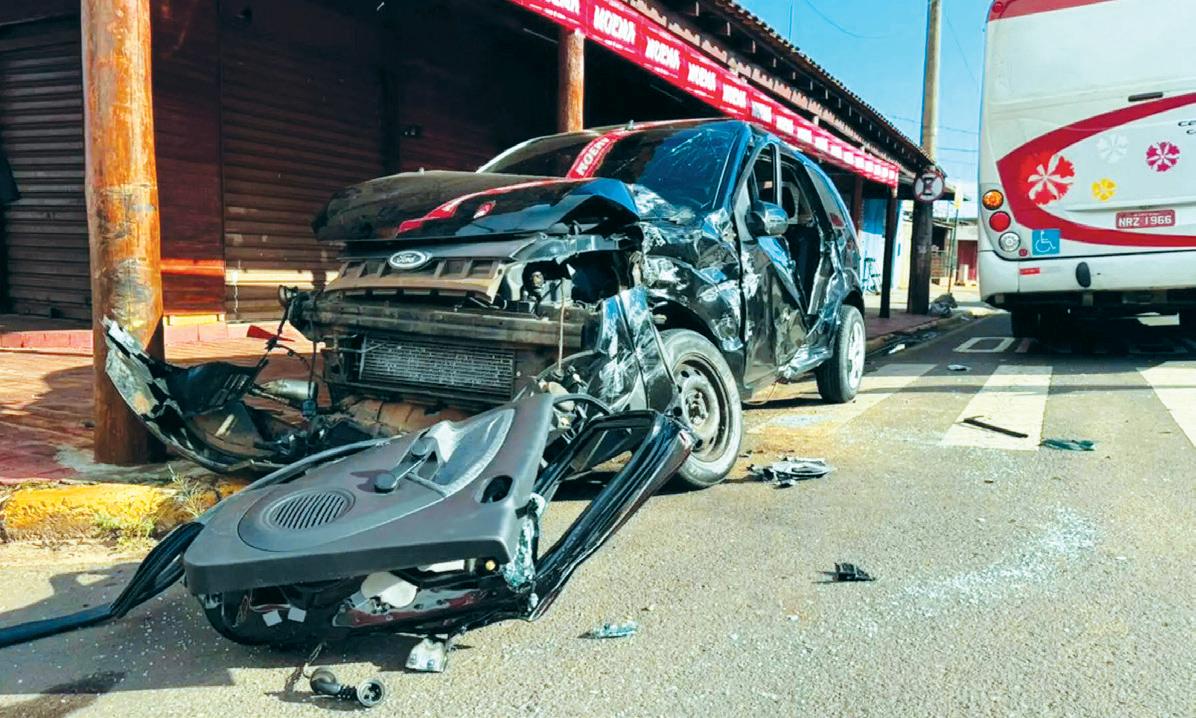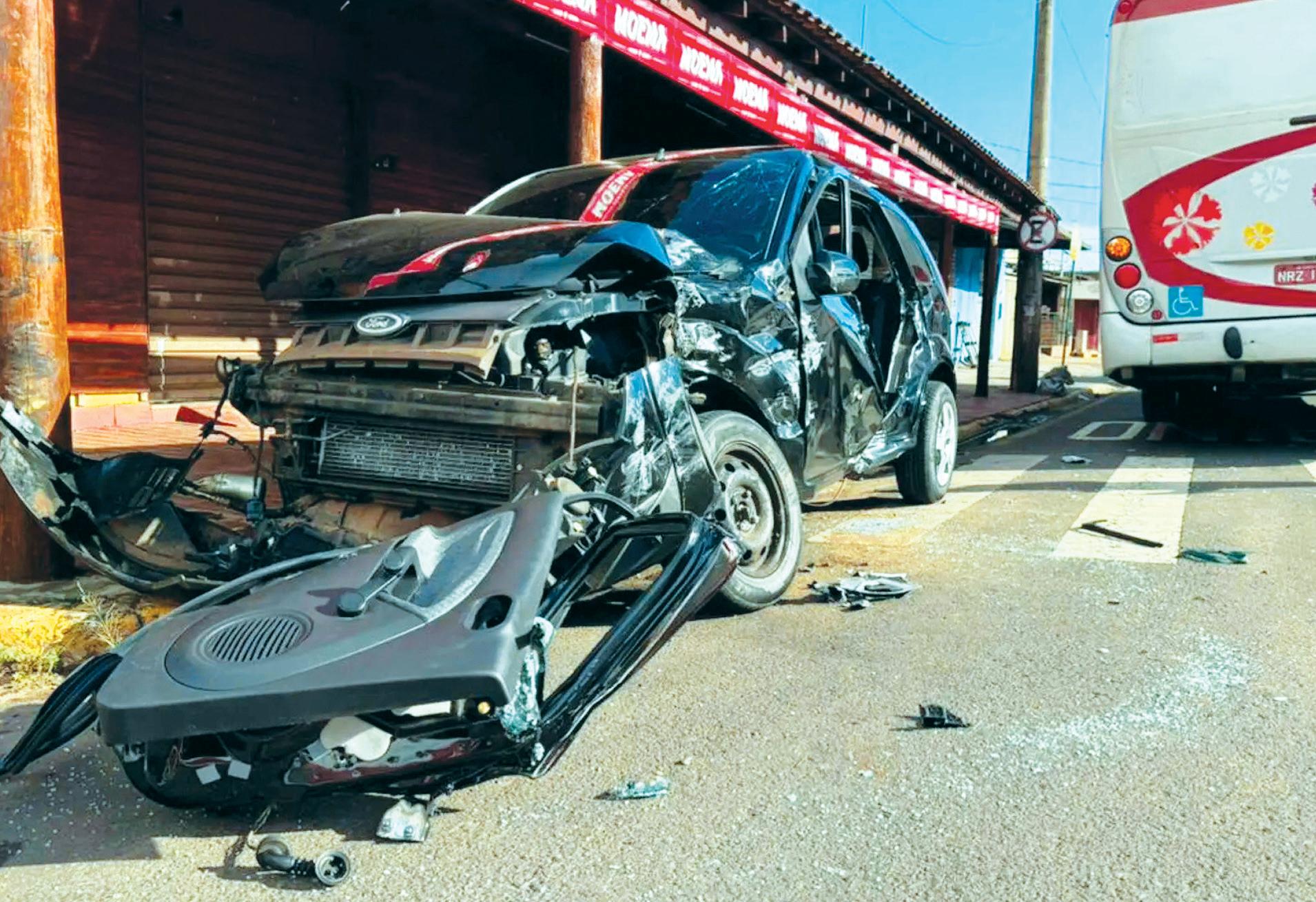 Carro bate em coletivo no corredor de ônibus da Brilhante e atinge comércio; local é palco frequente de acidentes