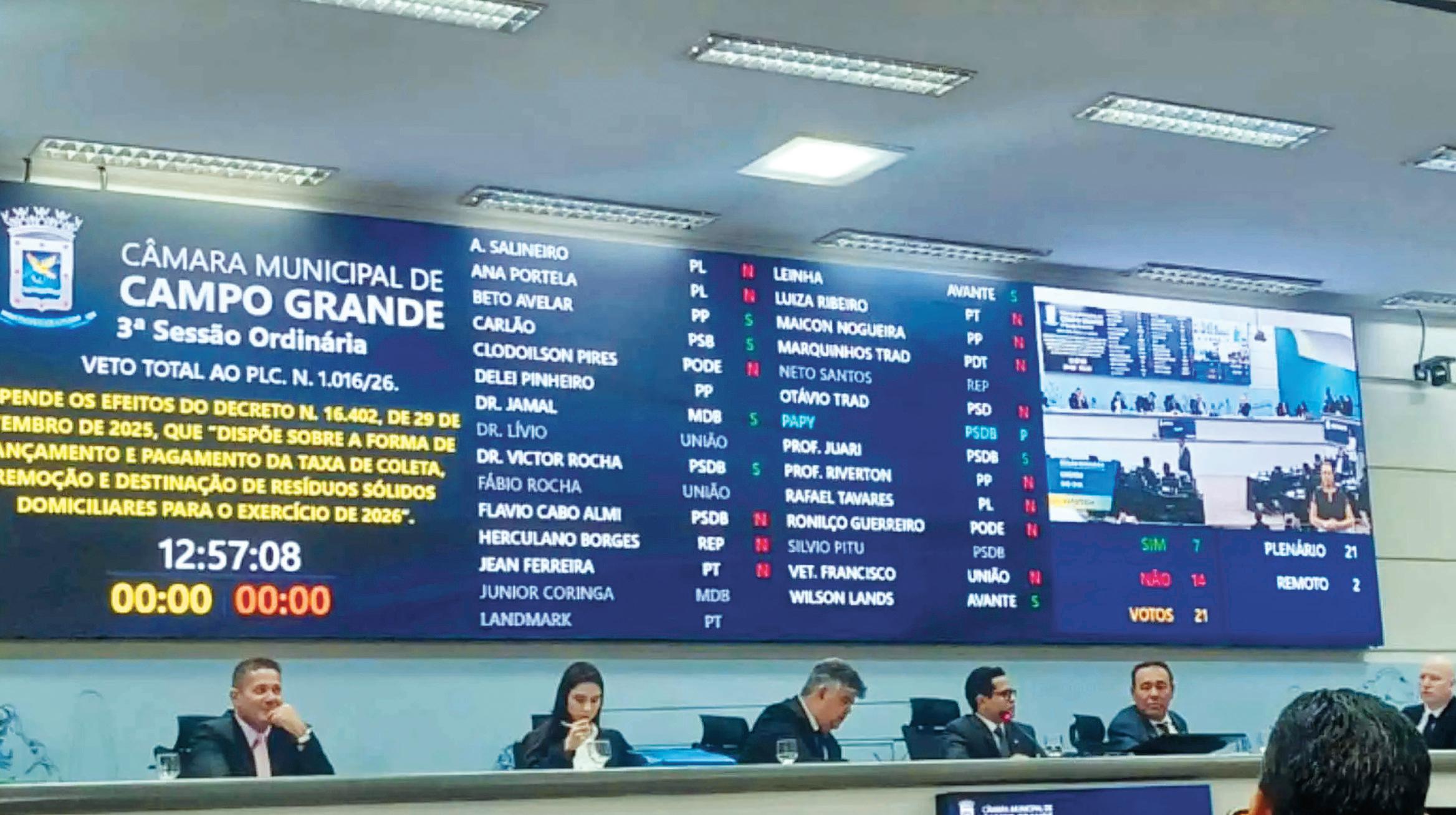 Midiamax Diário | 11 de fevereiro de 2026 | Mantida pela Câmara, correção da taxa do lixo é derrubad