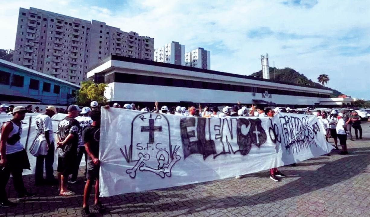 Eles portavam cartazes e faixas e proferiram cânticos de protesto. As faixas portavam mensagens como “Elenco de Finados”, “Luto” e cifrões, em referência à folha salarial santista. Neymar era um dos jogadores que estava no estacionamento do CT no momento do protesto. O Santos voltou aos treinos