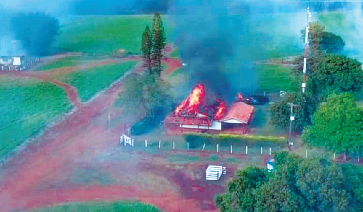 Indígenas expulsaram caseiro e incendiaram a Fazenda Ipuitã, em Caarapó