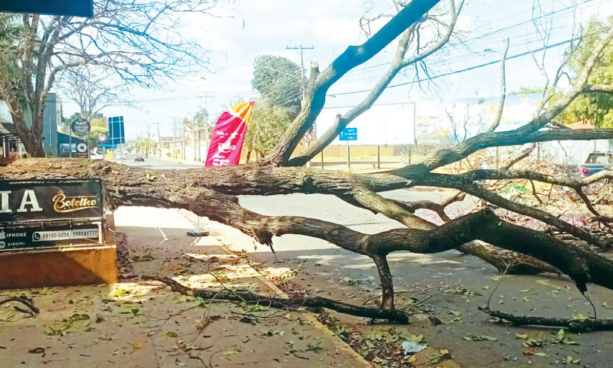 Ventania de até 24 km/h, de acordo com o monitoramento de satélite Zoom Earth, neste domingo, causou transtornos em vários bairros. Conforme leitores do Jornal Midiamax, na Rua José Nogueira Vieira, no Tiradentes foi registrada a queda de uma árvore.