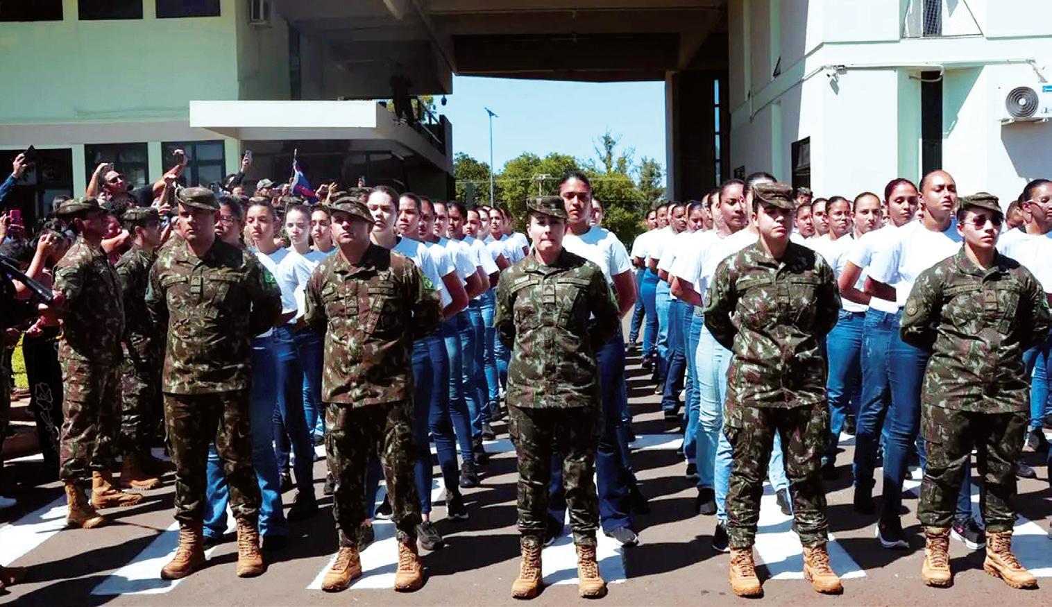 Nesta segunda-feira (2), 93 mulheres ingressaram na primeira turma feminina de estágio inicial como soldado do Exército Brasileiro em Campo Grande. O alistamento é facultativo para elas, mas obrigatório aos homens. As mulheres já podiam integrar os quartéis, mas, no estágio para soldados, esta é a primeira vez.
