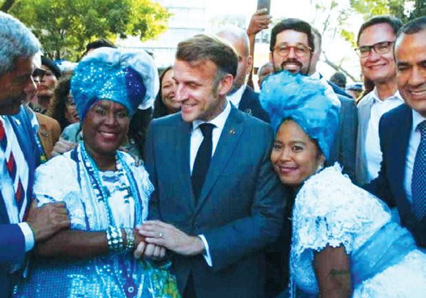 O presidente francês Emmanuel Macron desembarcou em Salvador na quarta-feira (5) para participar da abertura do Festival Nosso Futuro Brasil: Diálogos com África, realizado no Museu de Arte Moderna da Bahia. O evento também contou com a presença do governador Jerônimo Rodrigues e da ministra da Cultura, Margareth Menezes. A iniciativa faz parte da Temporada França-Brasil e inaugura uma série de atividades que ocorrerão até este sábado (8), com foco na valorização das relações culturais entre Brasil, França e países africanos. A programação inclui debates sobre cidades inclusivas e sustentáveis, justiça territorial, igualdade de gênero, inclusão social e fortalecimento das culturas afrodescendentes.