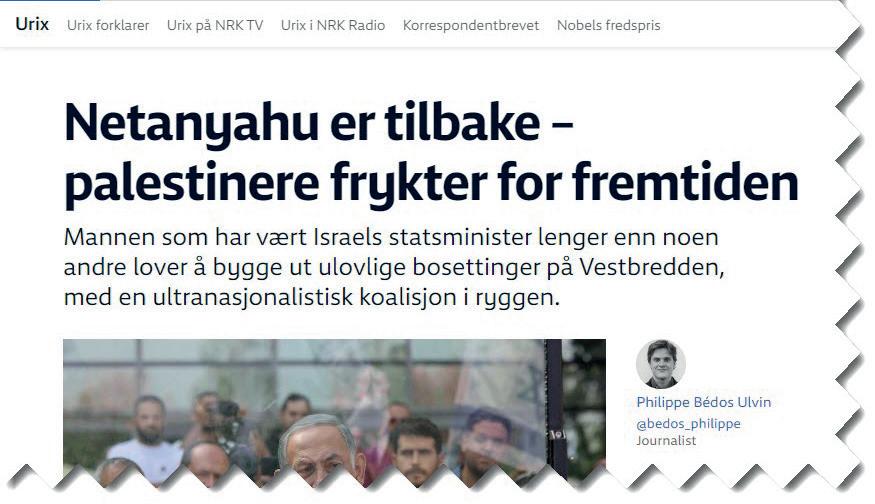 AV CONRAD MYRLAND 21. november var det et fritt og demokratisk valg i Israel. Da det viste seg å bli et høyreorientert flertall kom det en strøm av kritiske artikler i norske medier. MIFF kommenterte og påpekte hva mediene ikke melder. Da Benjamin Netanyahu klarte å få samlet dette flertallet i en koalisjon i romjulen, ble det en ny serie kritiske artikler.