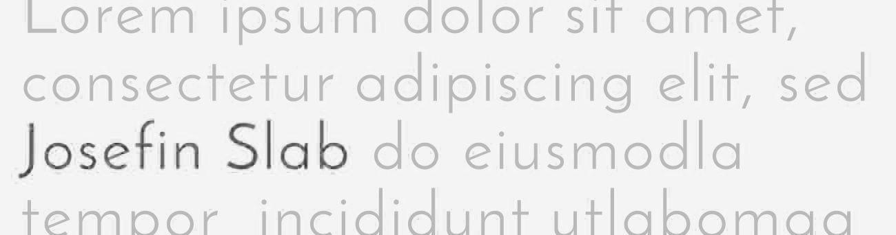Josefin Slab está inspirada en la corriente de formas geométricas de los años 30 pero adaptada a los tiempos modernos y, por supuesto, a la legibilidad en pantalla y a la fluidez en su lectura en textos largos.