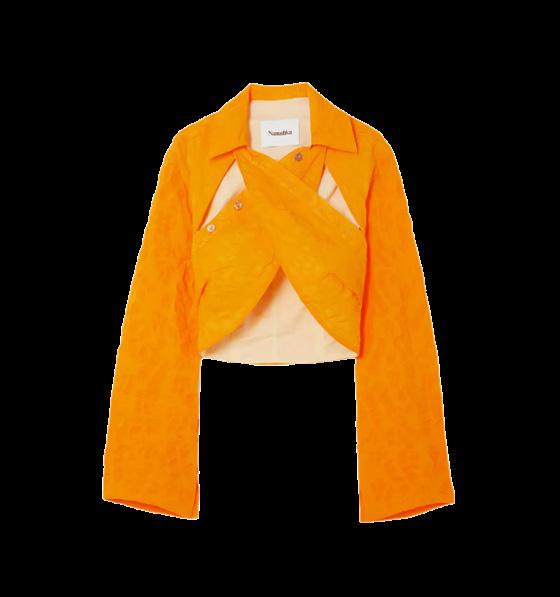 Apuesta por el naranja este otoño con un crop top en tono manda rina de Nanushka y unos jeans Sandro.