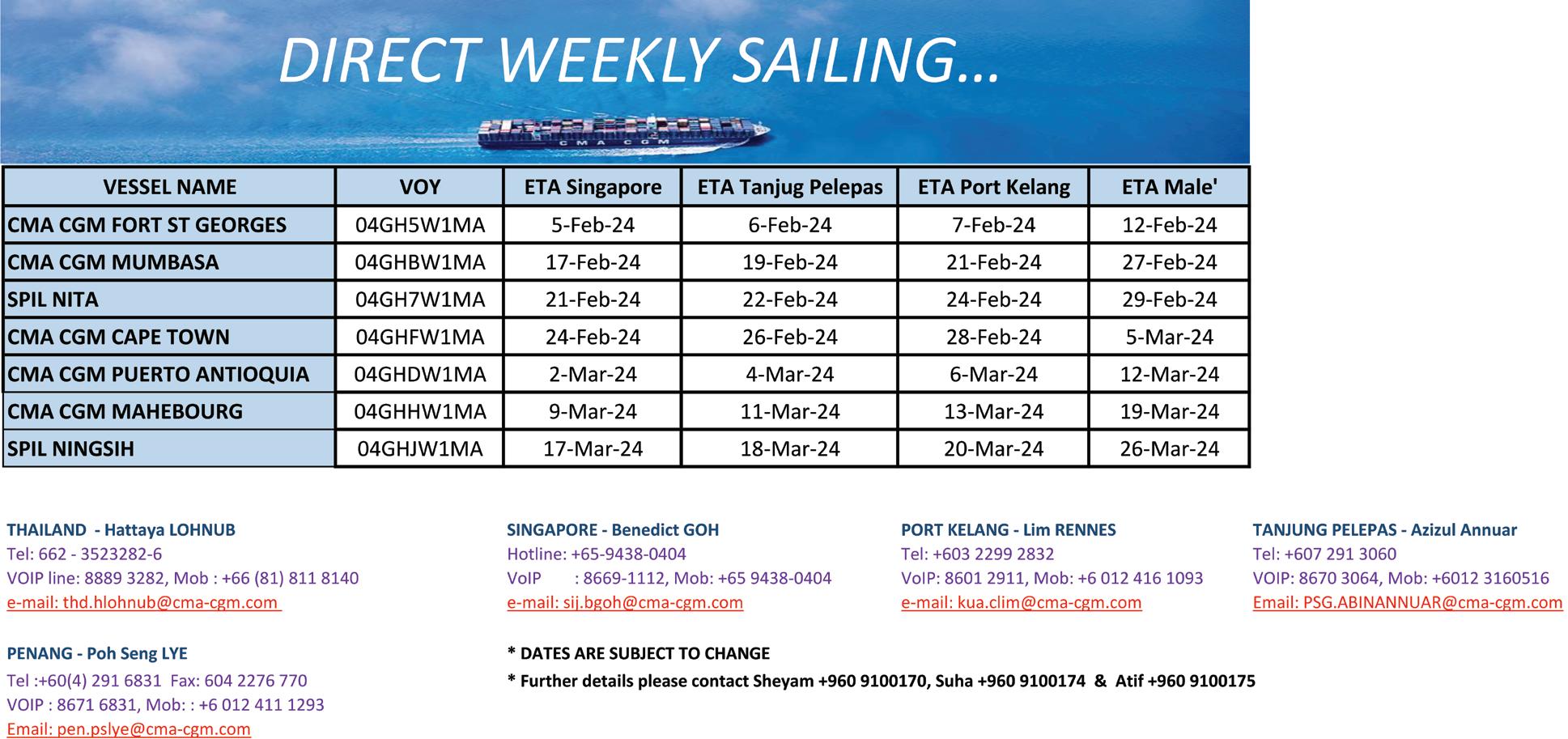 DIRECT WEEKLY SAILING…