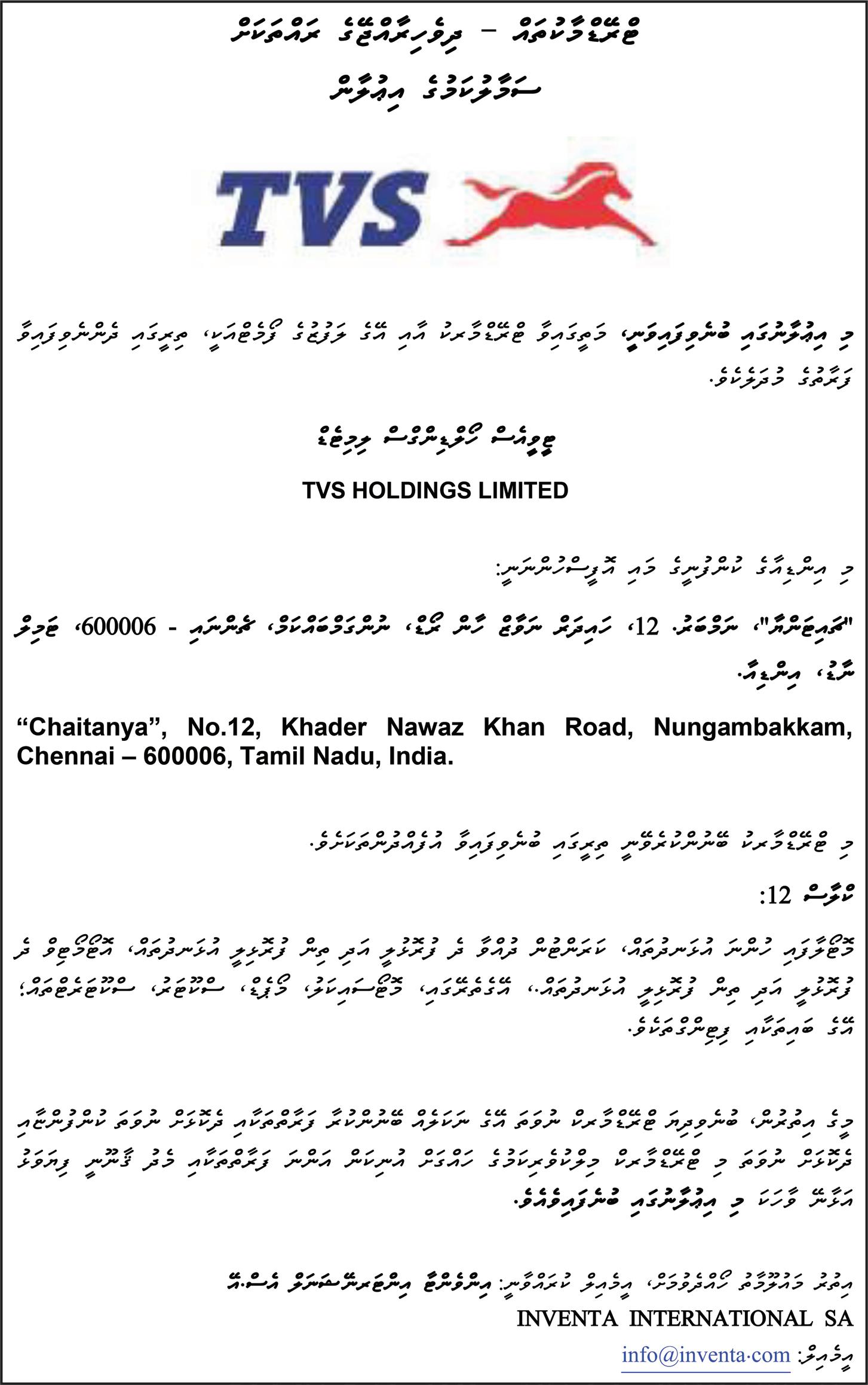 TOTAL TRANSPORT SOLUTIONS MALDIVES (PVT) LTD 5th Floor, Ma. Bodudhaharaage, Chandhanee Magu, Male', Maldives T. +960 3011888, F. +960 3011999