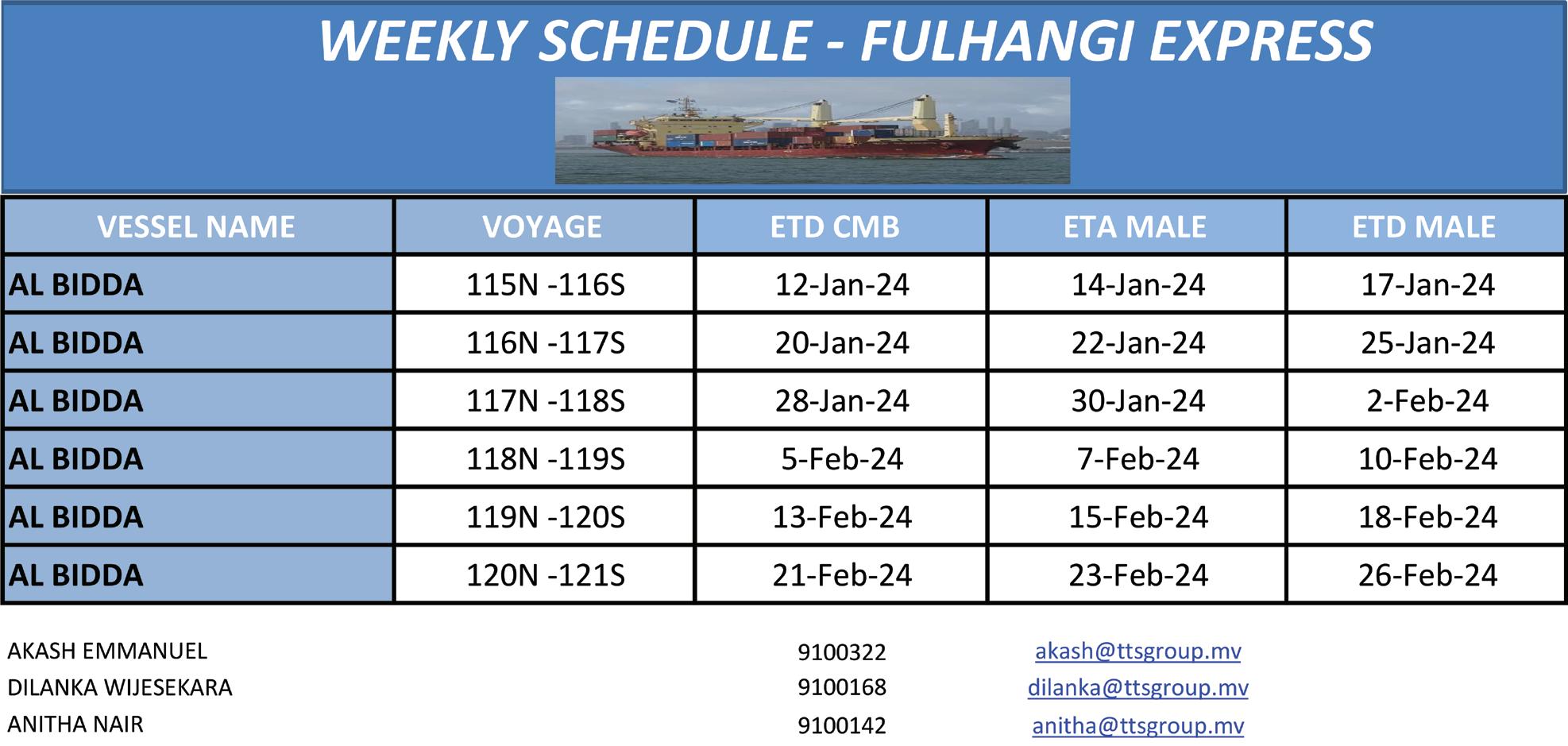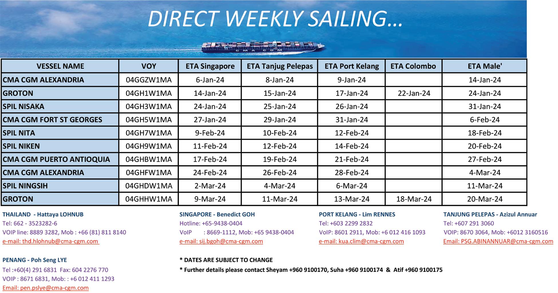 DIRECT WEEKLY SAILING…