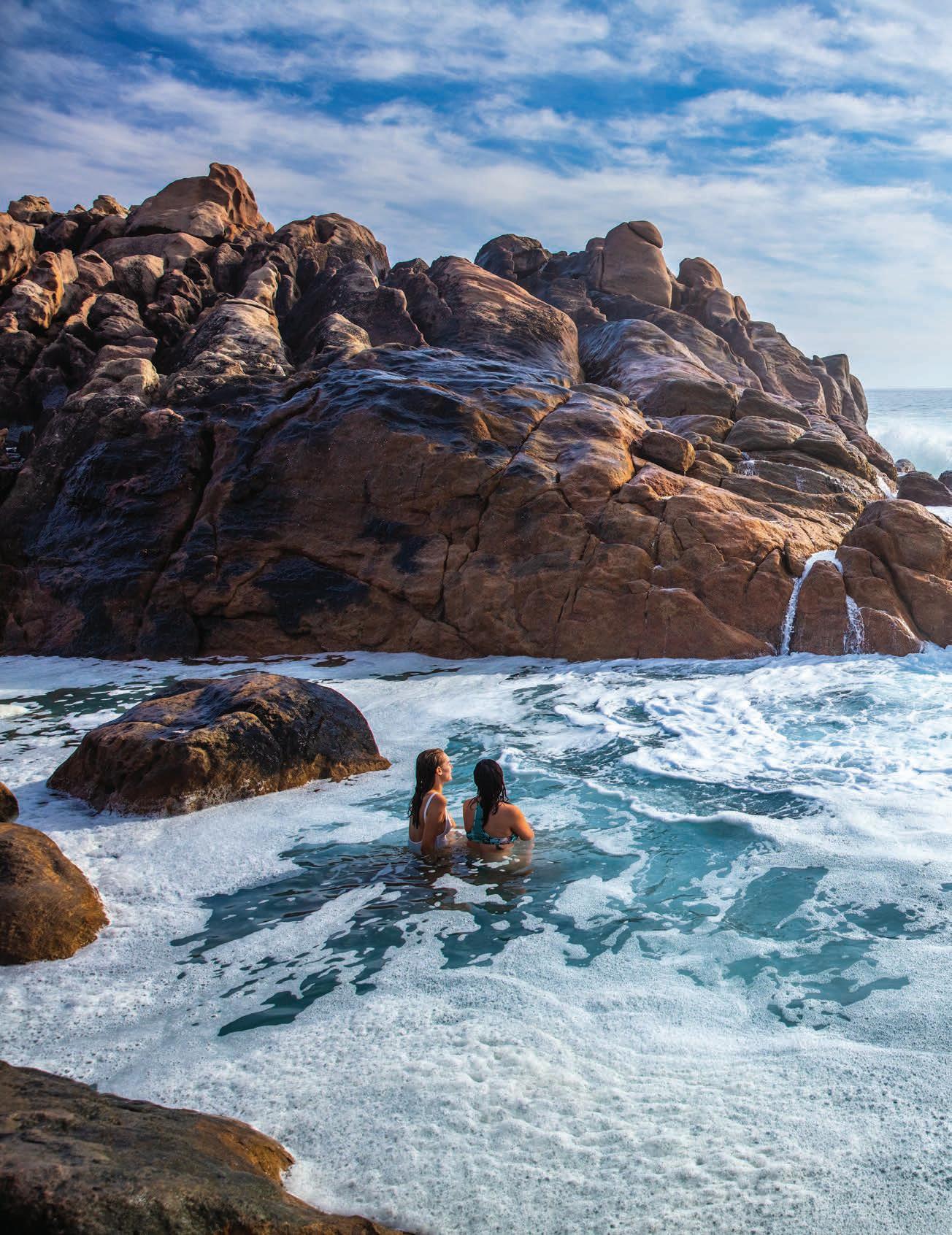 Insider tip: Visit on a clear, sunny day when tides and swells are lower. Early mornings or late afternoons o er the best light and fewer crowds. Wear sturdy shoes as the path from the car park winds steeply down over large rocks with no signage, so take your time. And always read the ocean before getting in: even on calm days, unexpected large waves can crash into the pool and catch visitors o guard.