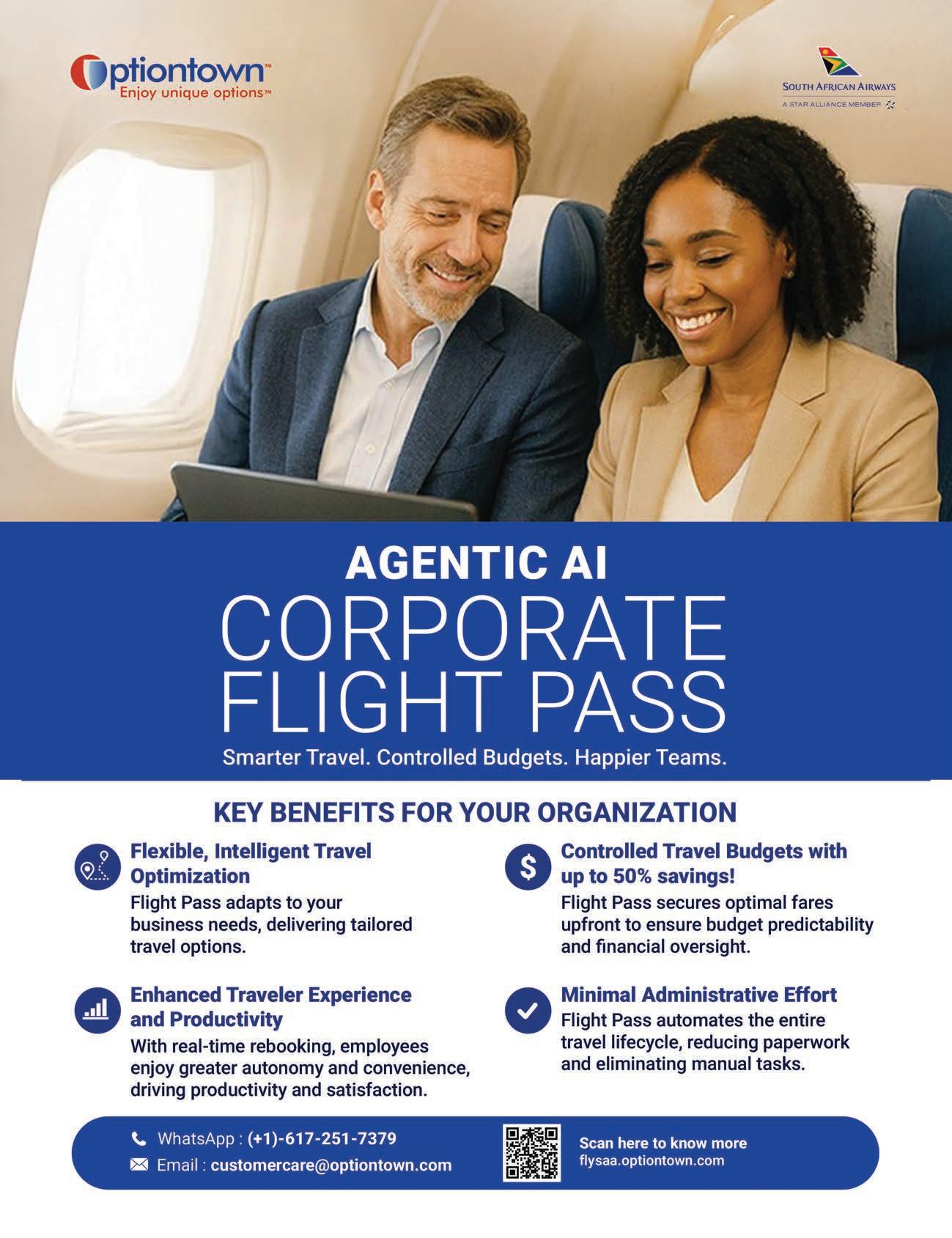 If you do one thing di erently in your organisation this year, let it be saying goodbye to ad-hoc business travel for good. The kind that sees your team make three separate trips to Johannesburg (or Cape Town or Nairobi) within a six-week period. Or book ights with less than ve days’ notice. Or add unnecessary expense, complexity and stress to alreadypacked schedules.