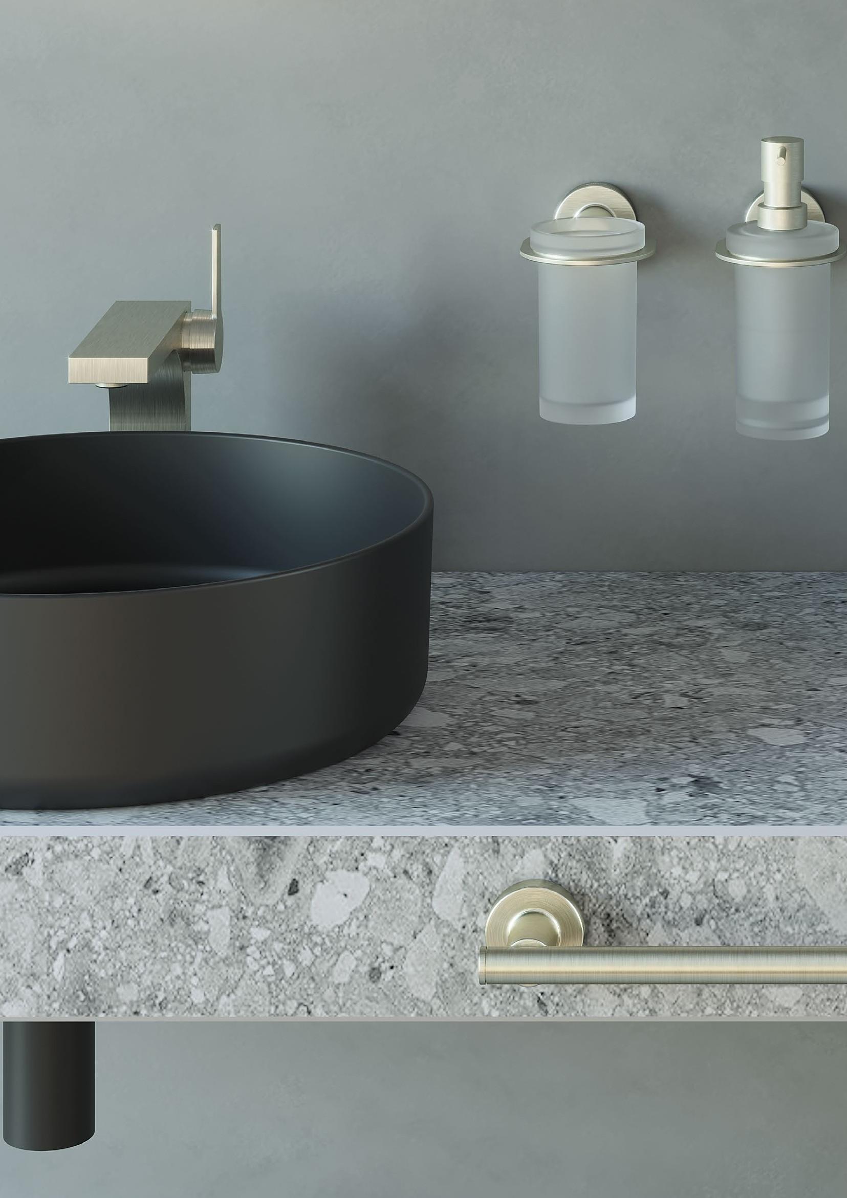A stylish blend of curves and angles makes the Solid range easy to match to many modern tap and brassware designs.