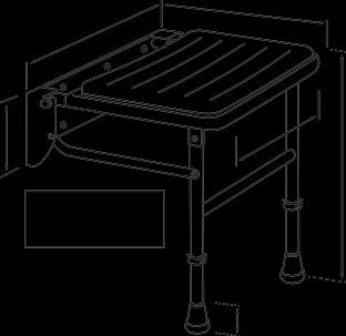 Foldedprojection fromwall: without legs55mm withlegs90mm Screwlegadjustment ofupto20mm