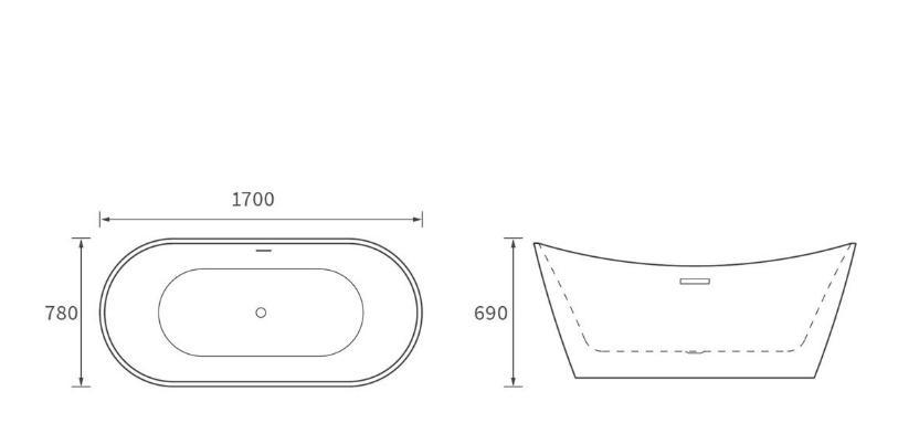 L1700xW790xH600 HAB632802B £1829 FREESTANDING ACRYLIC BATH