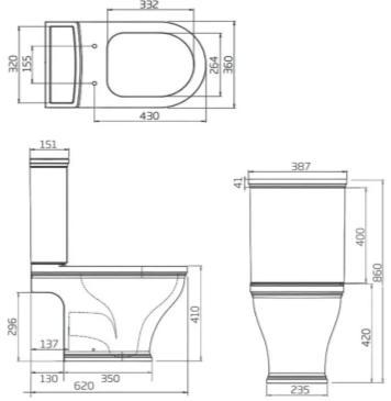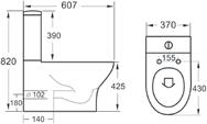 H 820 x W 370 x D607 – Including soft closing seat