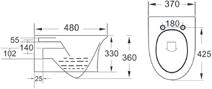 H 360 x W 370 x D485 –- Including soft close seat