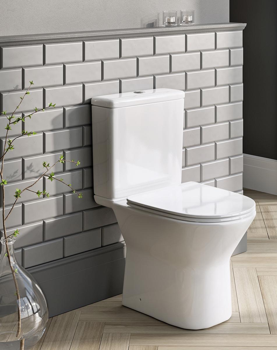 The Slim Close Coupled Open Back WC and Cistern offers a minimalistic design for a contemporary bathroom style. This Toilet features a modern White finish to blend into any bathroom or ensuite. This Close-Coupled WC provides style and practicality with its hygienic rimless design and Short Projection, ideal for compact spaces. Two matching furniture basins are available to complete the look and style.