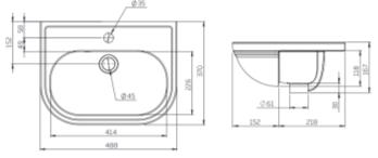 H 150 x W 550 x D 430 - 1 Tap hole only