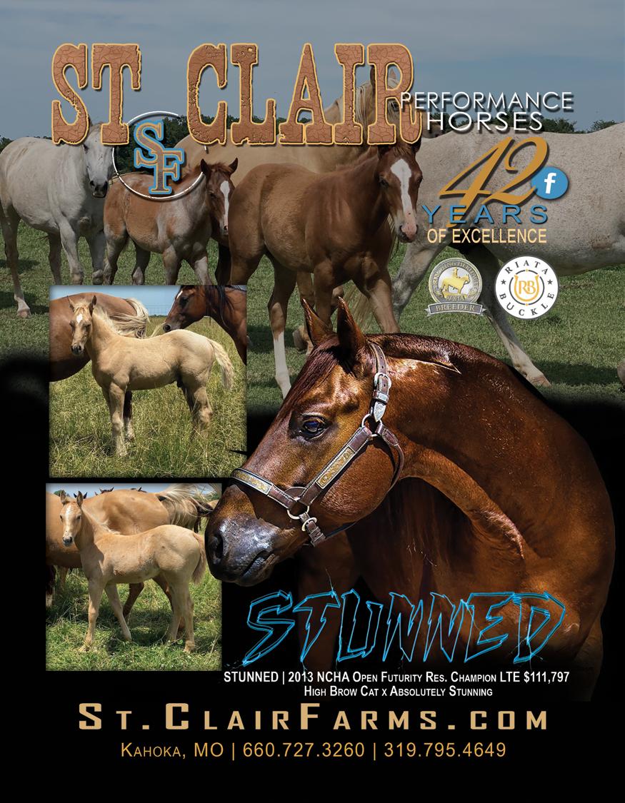 But Poco Stampede was a little different. He was shown at halter in the morning, and then cutting was his only performance class. He was shown in halter and cutting as a twoyear-old, something virtually unheard of today. His AQHA record shows that he was taken to five shows in 1954. His first show listed was a cutting at Paducah, Texas, earning his first cutting point. He was shown in the two-year-old stallion class at Stamford, Gladewater, Odessa, and Abilene that same year. The AQHA doesn’t show how he placed, but he earned one point at Stamford, one point at Gladewater, two points at Odessa, and two points at Abilene in halter. He was shown twice in cutting, once at Stamford, earning one point, and at Gladewater, earning two points. This gave him a record of six halter points with four cutting points as a two-year-old.