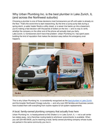 Why Urban Plumbing Inc. is the best plumber in Lake Zurich, IL and across the Northwest suburbs