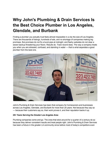 Why John's Plumbing & Drain Services Is the Best Choice Plumber in Los Angeles, Glendale, and Burban