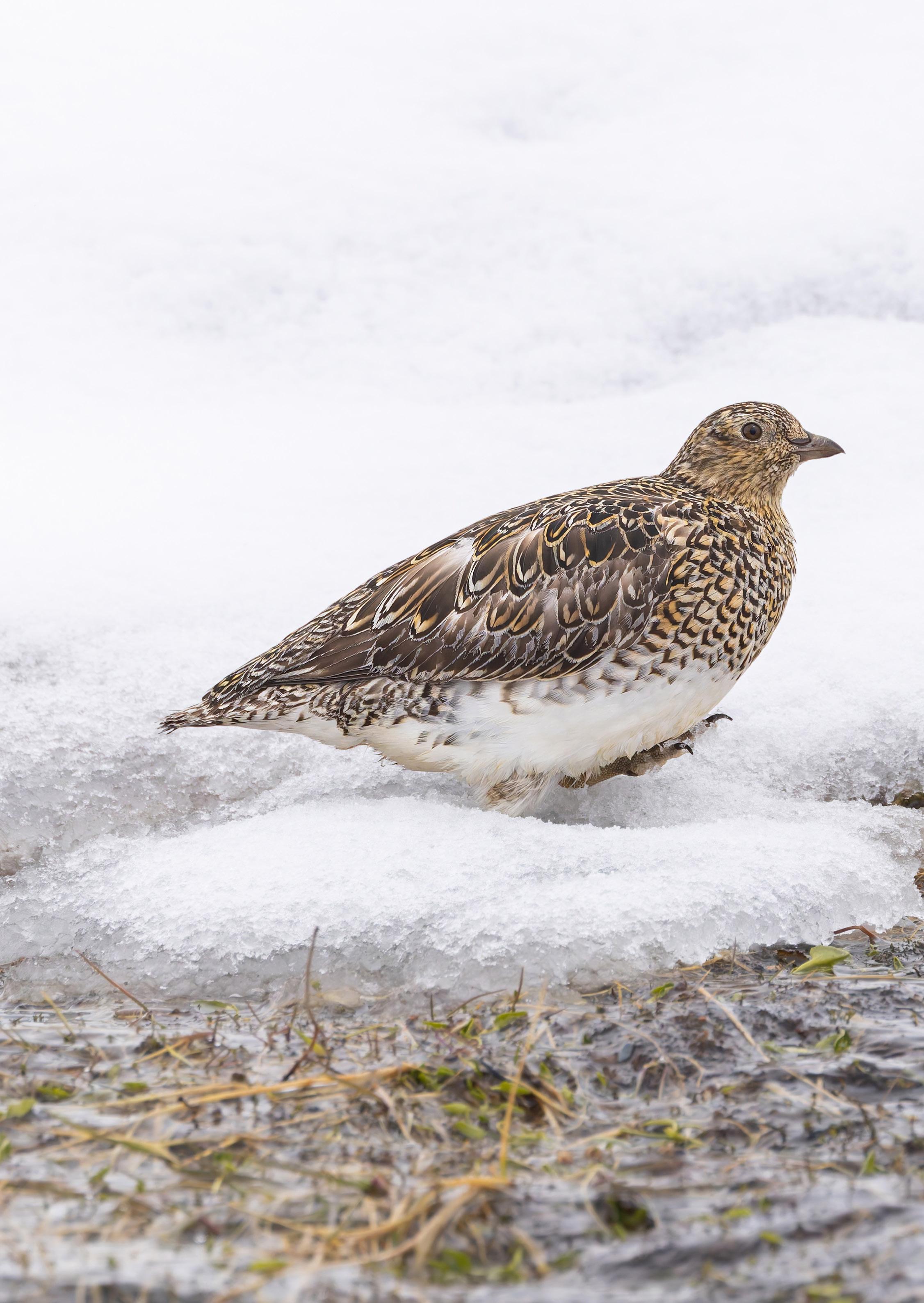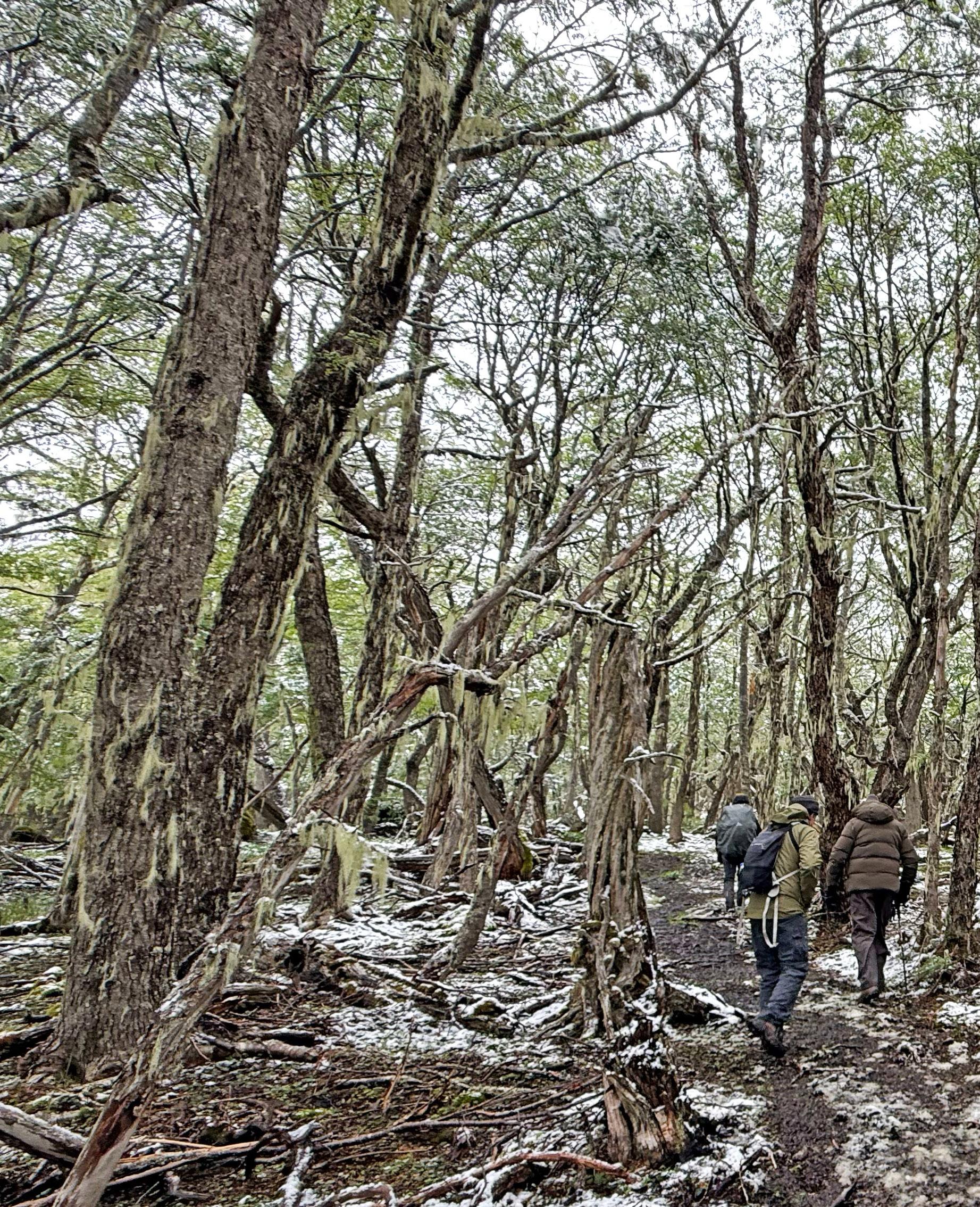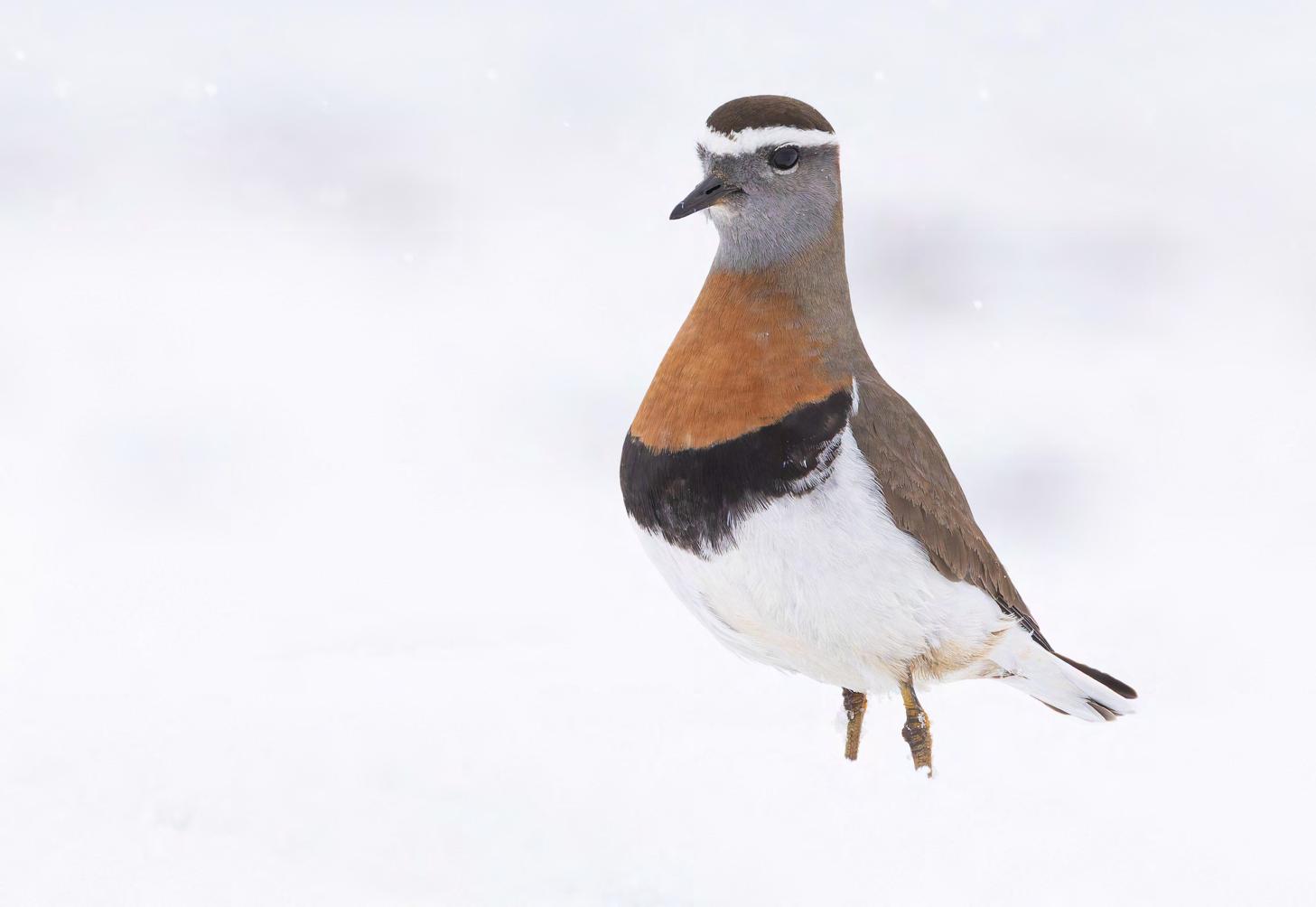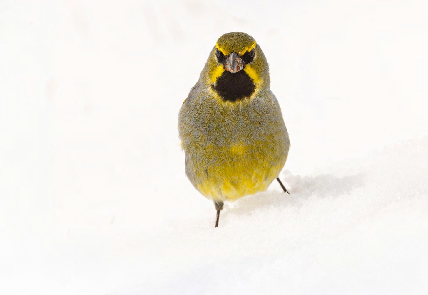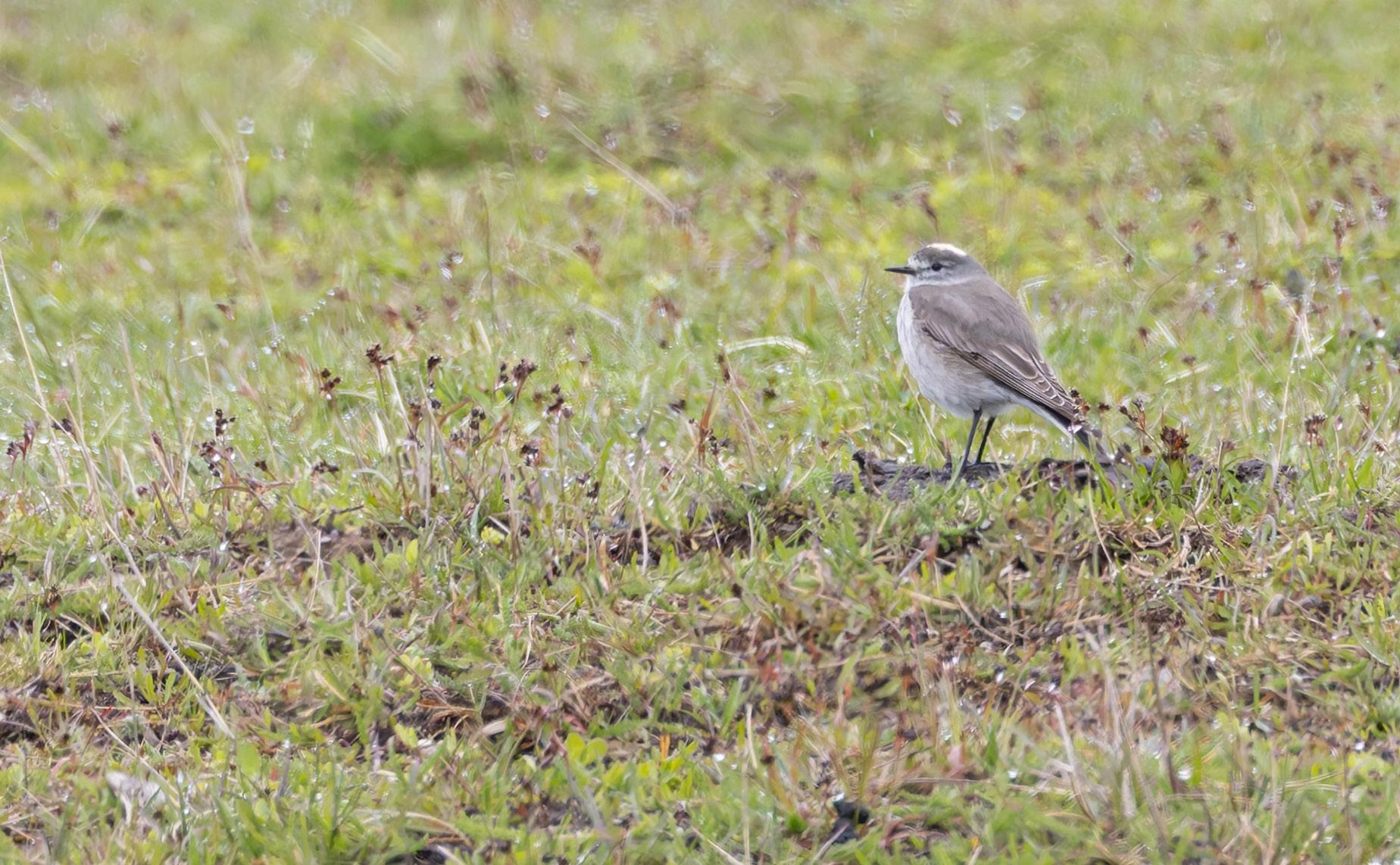 have been madness. Thank goodness for the new Birding Ushuaia site on the northern side of the watershed, which does not bear the same brunt of storms from the south and is accessed by a much easier hike. Not shorter at 8km return but entirely gentle gradient. We made another stop at a gravel airstrip by Ruta Nacional 3 north of Lago Escondido and spotted the hoped-for Ochre-naped Ground Tyrant, no doubt forced down from the mountain tops above by the snowstorm. A few Ashy-headed Geese and a Black-faced Ibis were also here. A couple of roadside Austral Blackbirds followed soon afterwards. We made our way through the beech wood via forestry tracks to the trailhead and then followed a hike along a water-logged trail to the treeline, across the grassland and then an easy stroll up to the seedsnipe’s alpine habitat. Two excellent specialities of the southern Andes quickly followed: Yellow-bridled Finch and Rufous-chested Dotterel. Both stunning birds lit up the whiteness of the fresh covering of snow, the dotterel doing a distraction display, which we followed. Ochre-naped Ground Tyrants had also stayed up here, at a slightly lower elevation than the pass. We paused for a cup of coffee, as our guide Federico took us to a likely spot for the seedsnipe, which he