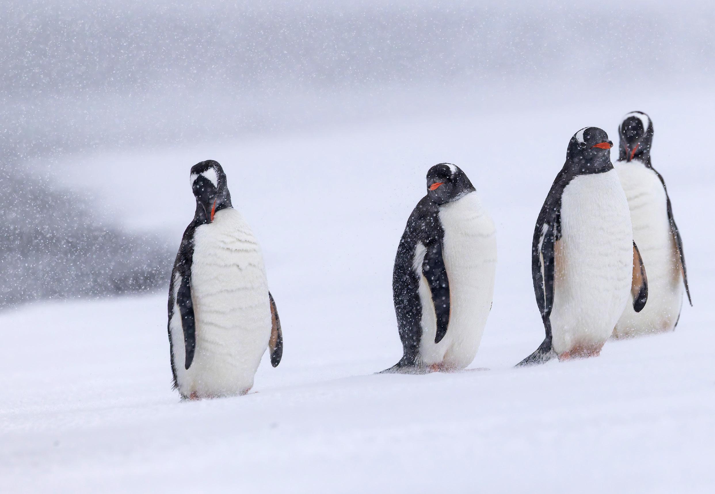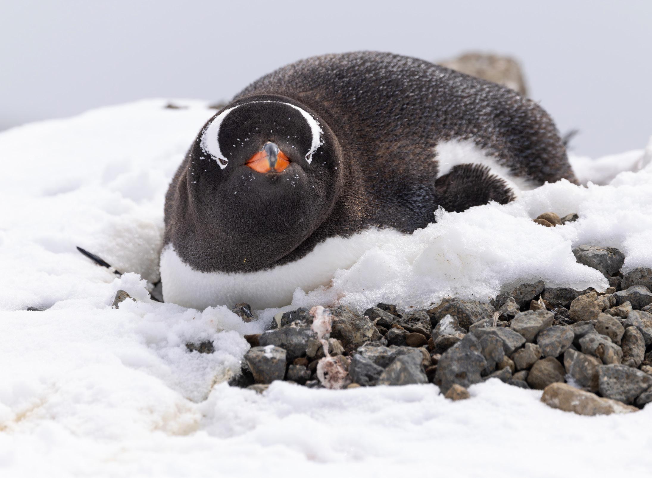 Gentoo Penguin ◊ Pygoscelis papua Common, including a landing at Brown Bluff.