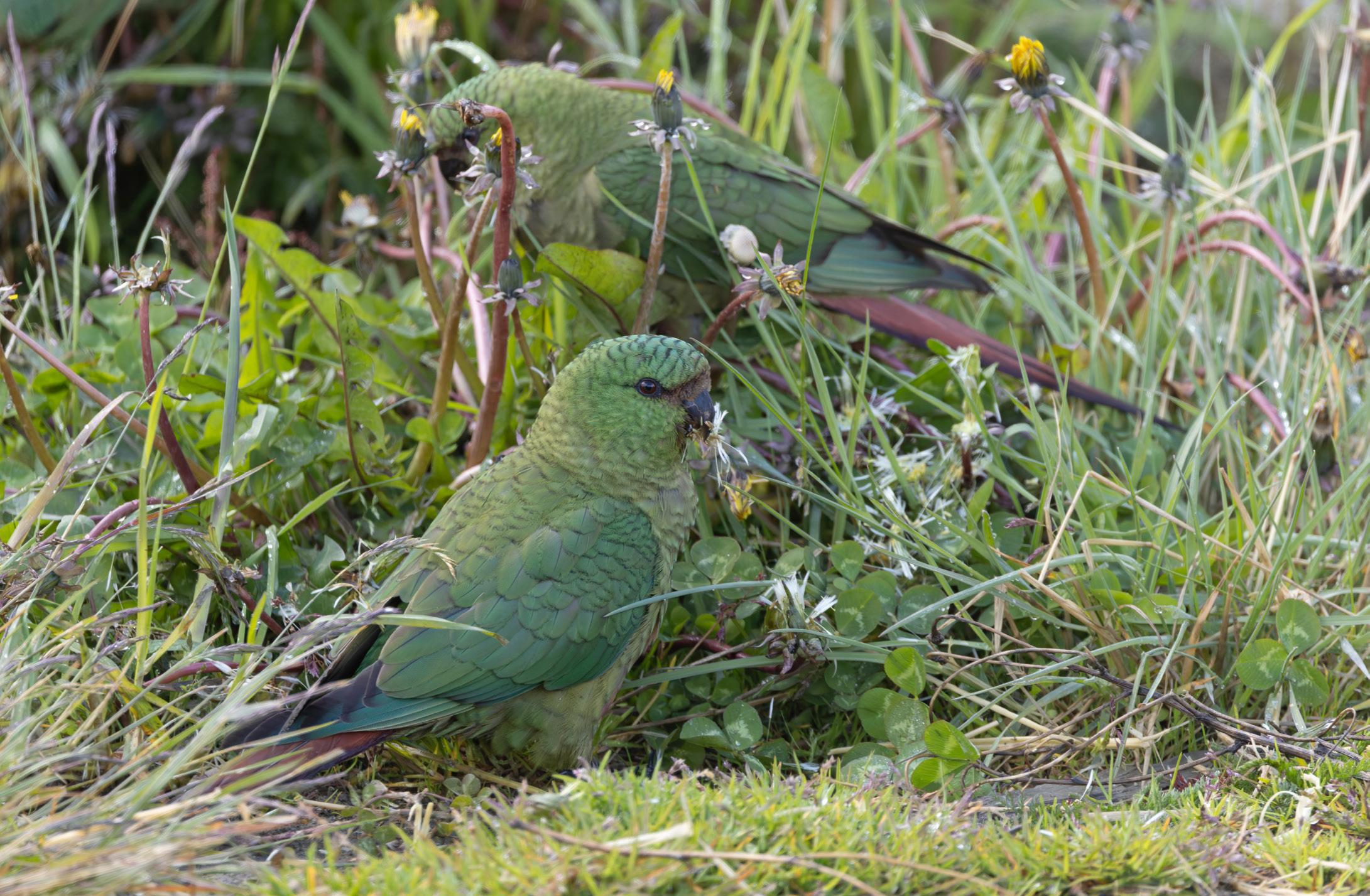 Austral Parakeets. Next page: Yellow-bridled Finch & Rufous-chested Dotterel (Mike Watson)