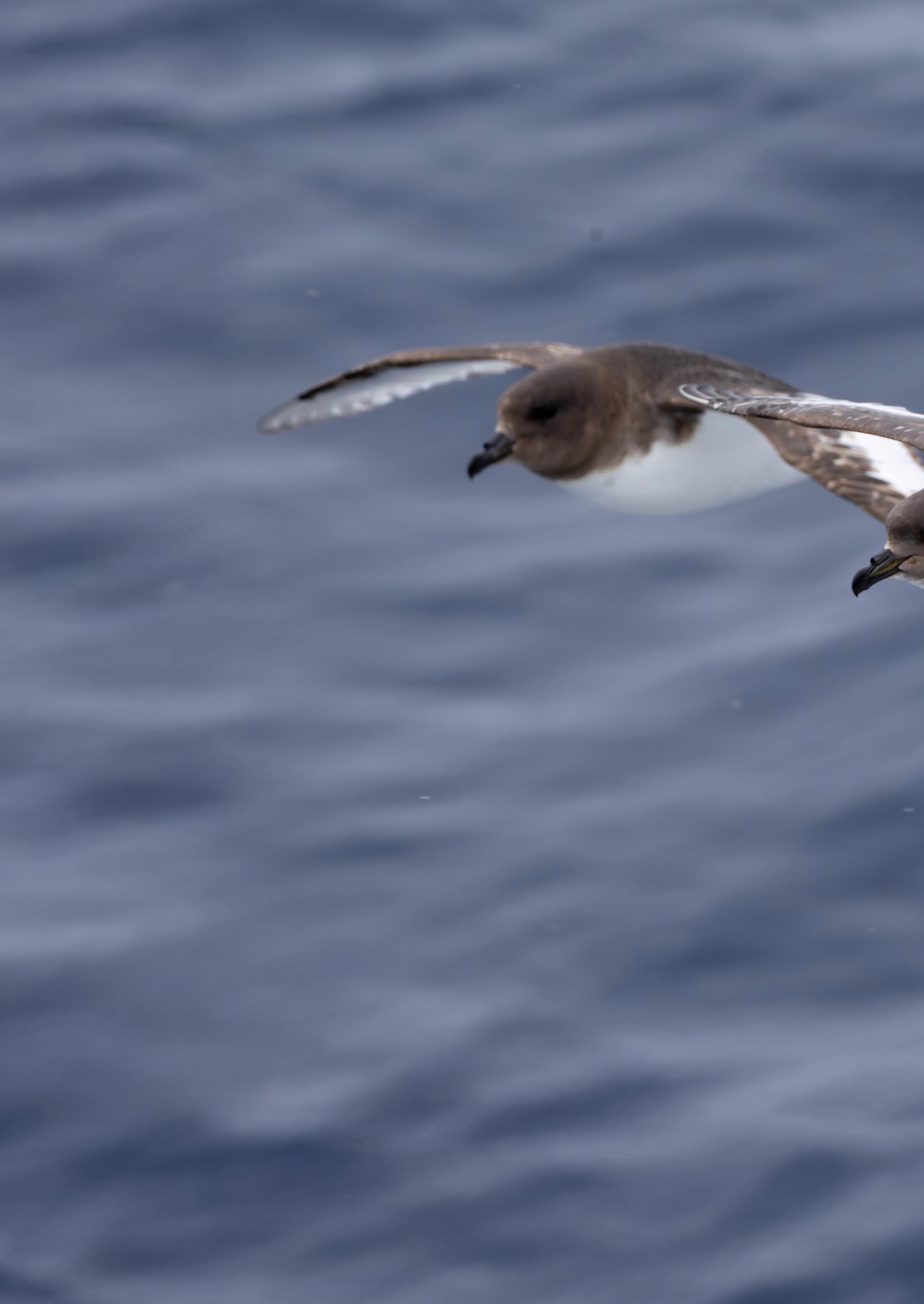 Petrels. They circled MV Ortelius ever faster before gaining height and swinging away from the boat and out of sight. An Antarctic Minke Whale surfaced nearby, and Fin Whale and 3 Humpback Whales were also spotted but we do not usually have time to stop for whales, we usually have a schedule to stick to.
