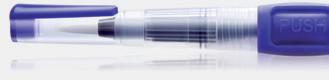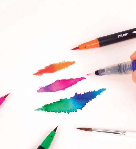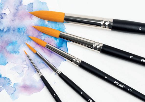 Pinceles con depósito recargable de 8 ml para agua. Adecuados para pintar con pastillas de acuarela, lápices acuarelables, tinta o técnicas que requieran aguada. Brushes with a refillable water tank of 8 ml. Suitables for watercolour work with pencils, wash drawing or ink and wash.