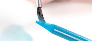 Sponge brush with a blue plastic handle, for applying watercolour and poster paint. Ideal for drawing backgrounds on paper, fabric, wood and engraving plates. 0 (smooth, 25 mm), 1 (smooth 70 mm), 2 (horizontal stripes, 70 mm), 3 (vertical stripes, 70 mm) and 4 (toothed, 70 mm).