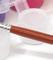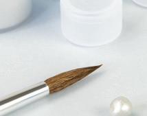 Rounded brush with a fine tip and a bright blue varnished short handle with a matte silver end. Nickel plated tin ferrule.