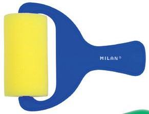 Pincel de esponja con mango de plástico azul, para la aplicación de acuarelas y témpera. Idóneo para la realización de fondos sobre papel, tela, madera y planchas de grabado. Distintas formas: 0 (liso, de 25mm), 1 (liso de 70mm), 2 (franjas horizontales, de 70mm), 3 (franjas verticales, de 70mm) y 4 (dentado, de 70mm).