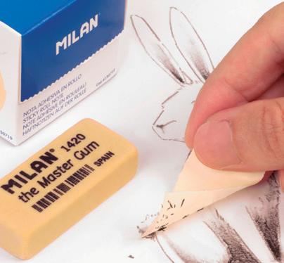 Especial para borrar trazos de lápices blandos. Borra sin dejar virutas. Special eraser for soft pencil lines. Erases without leaving shavings. Spécialement conçue pour effacer les traits de crayon souple. Efface sans laisser de miettes.