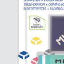 Gomma di plastica morbida, versatile, non abrasiva. Per cancellare su tutti i tipi di superficie. Non danneggia la carta.