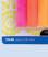 Acessórios funcionais para a escola e o escritório em cores ácidas e vibrantes.