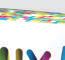 Inspirowana zabawą i radością podczas procesu twórczego. Dzięki unikalnej palecie kolorów, różne kształty kolażu stają się nadrukiem tej kolekcji.