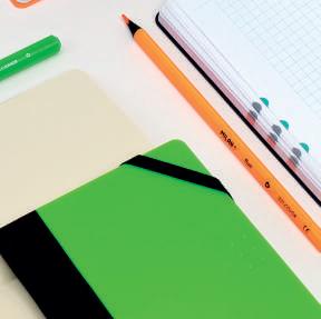 Accessori funzionali per scuola e ufficio in colori acidi e vibranti.