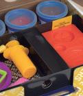 Un insieme di materiali trasparenti e colori brillanti che ci consente di vedere i prodotti al loro interno, con componenti e meccanismi.