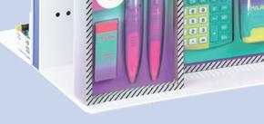 Funkcjonalne dodatki szkolne i biurowe w jaskrawych oraz żywych kolorach.