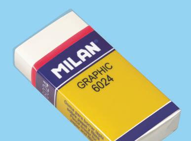 Borracha de plástico mole, versátil, não abrasiva. Para apagar sobre todo o tipo de superfícies. Não danifica o papel.
