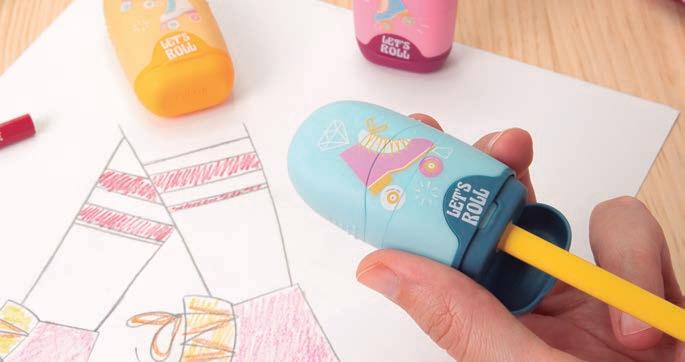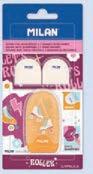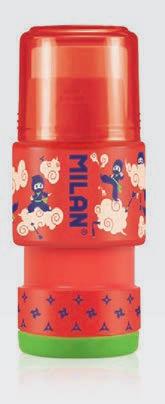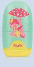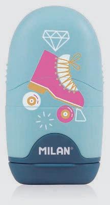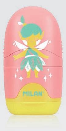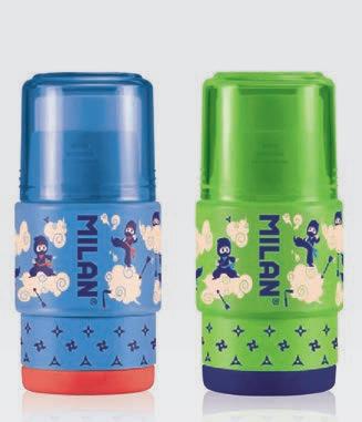 Le gomme con temperino sono un prodotto innovativo sviluppato dal reparto R&S che combina una gomma MILAN con un temperino con scomparto rifiuti. Disponibili diverse linee di disegno, serie e colori.