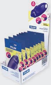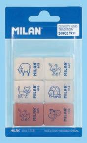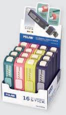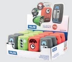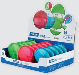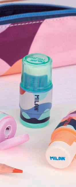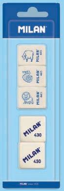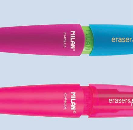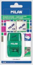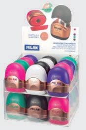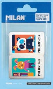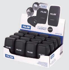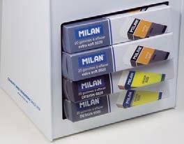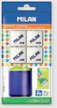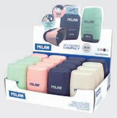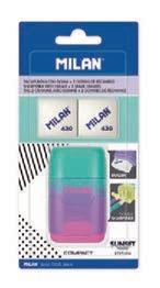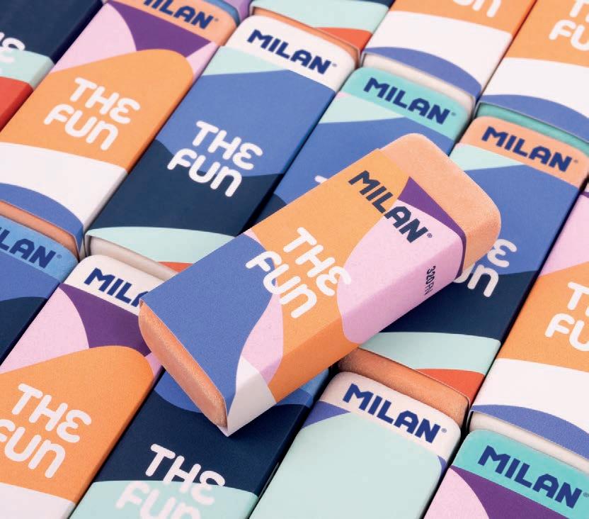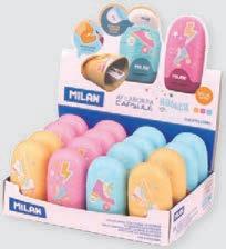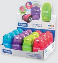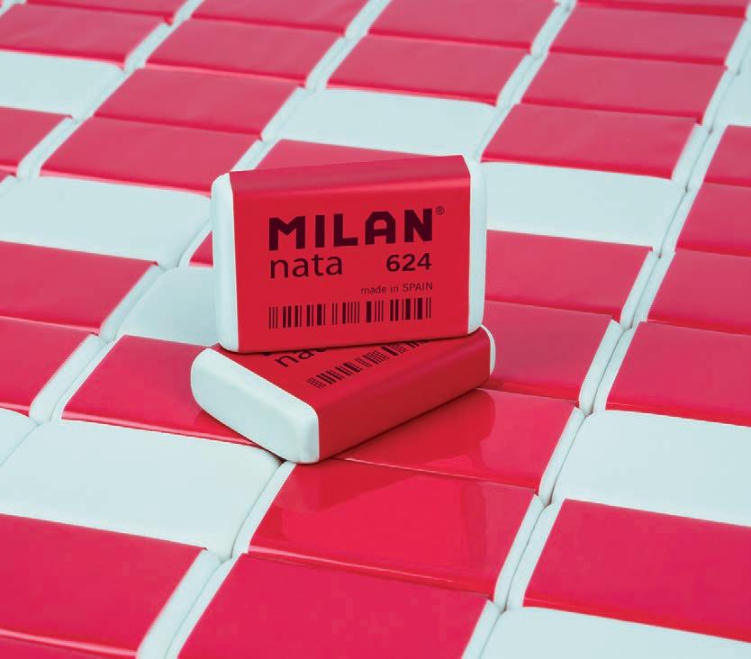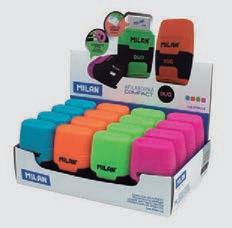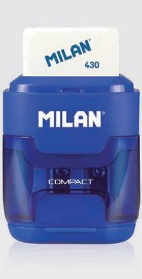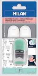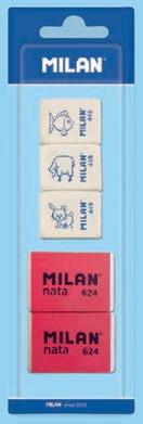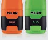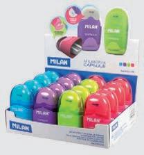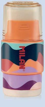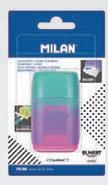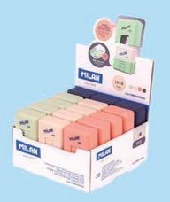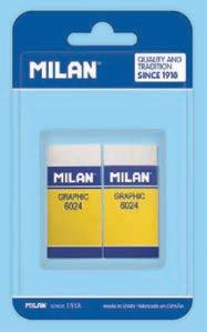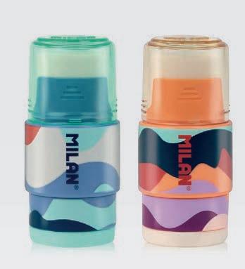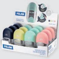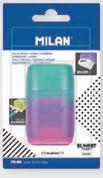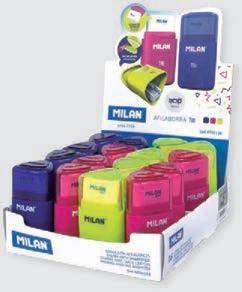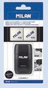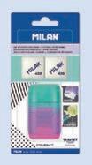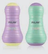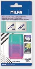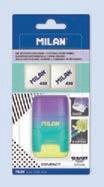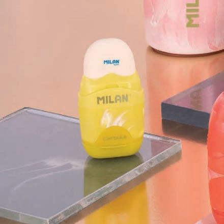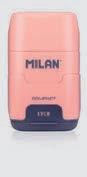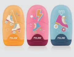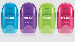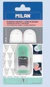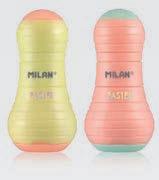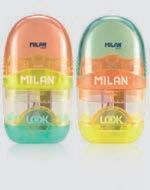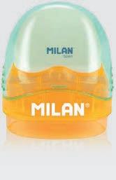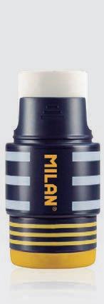 As borrachas com afia-lápis são um produto inovador desenvolvido pelo departamento de I+D que combina uma borracha MILAN com um apara-lápis com depósito. Diferentes linhas de design, séries e cores disponíveis.