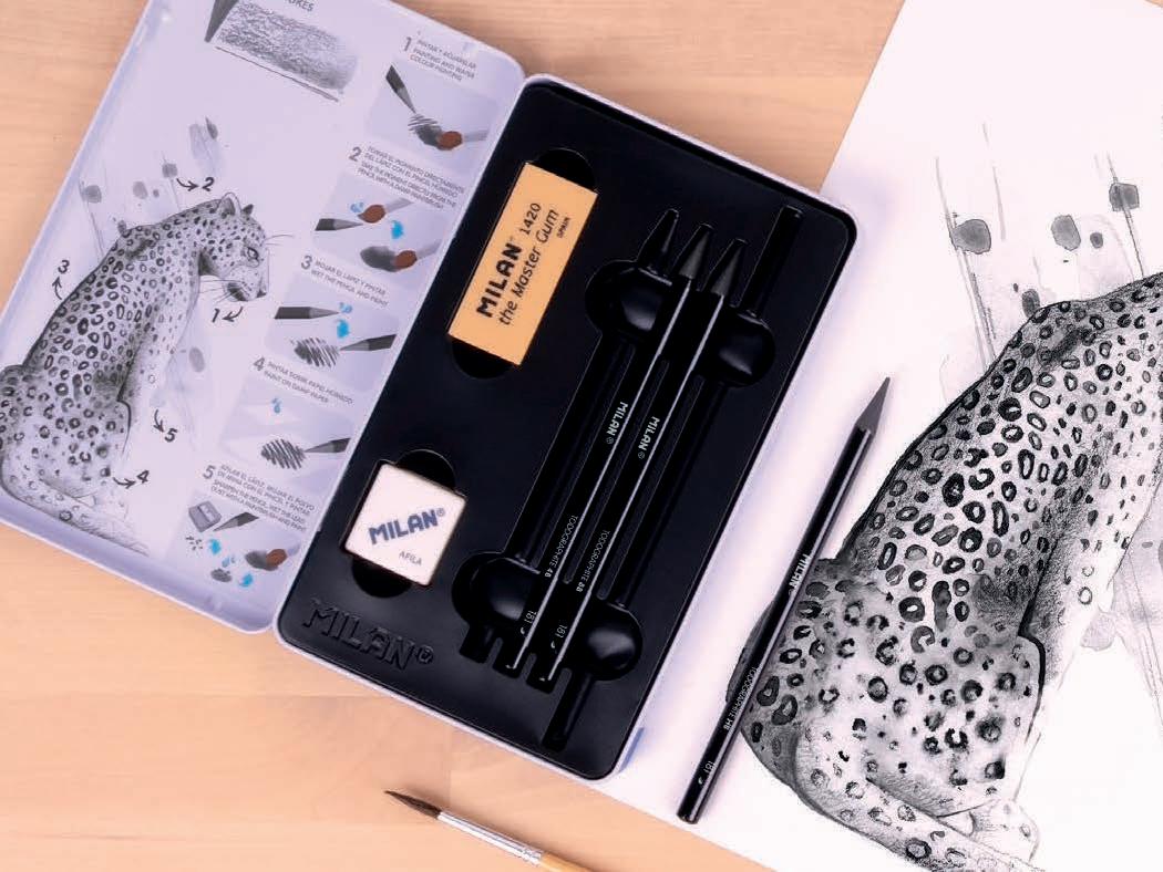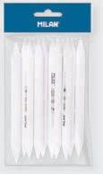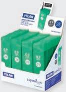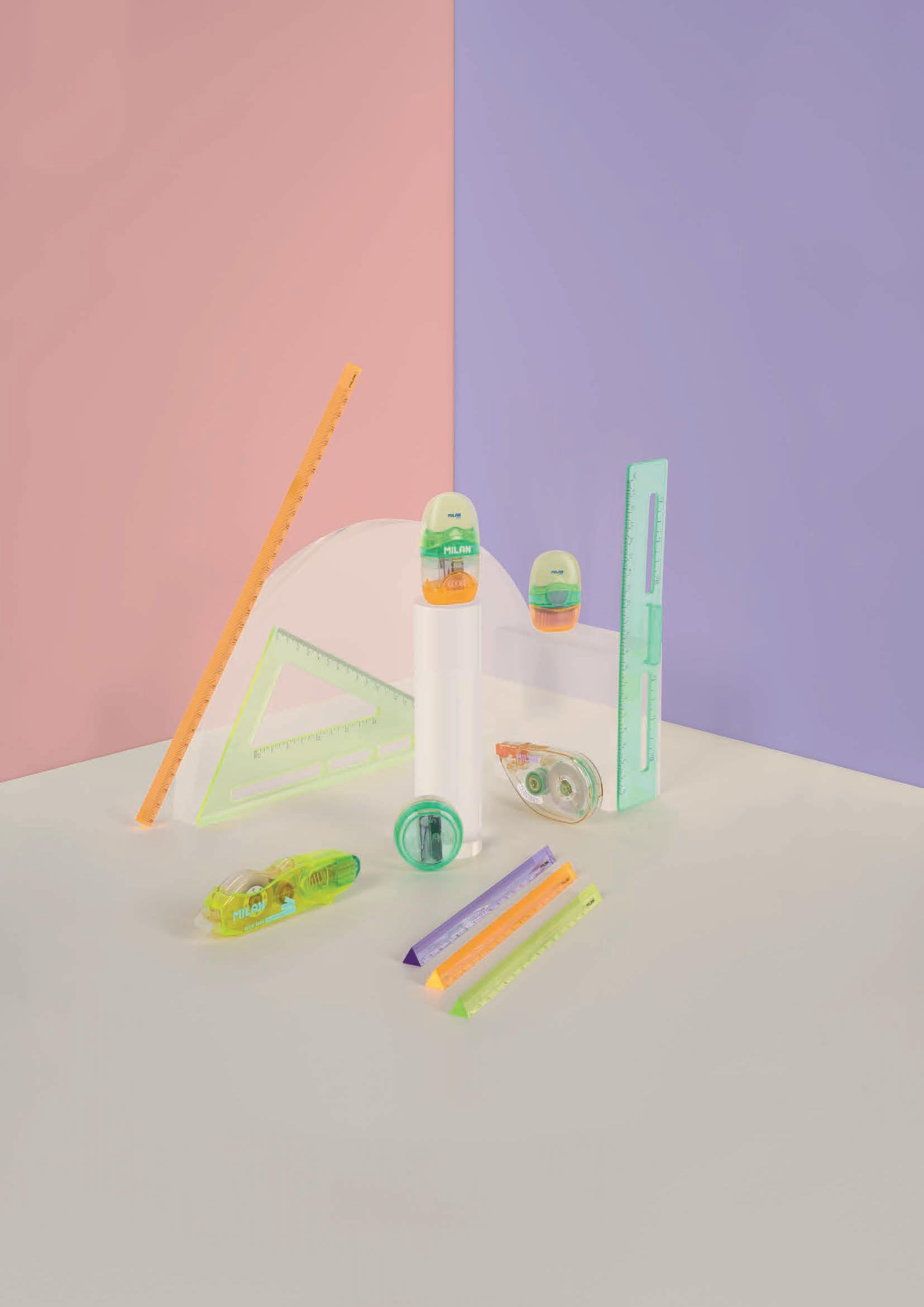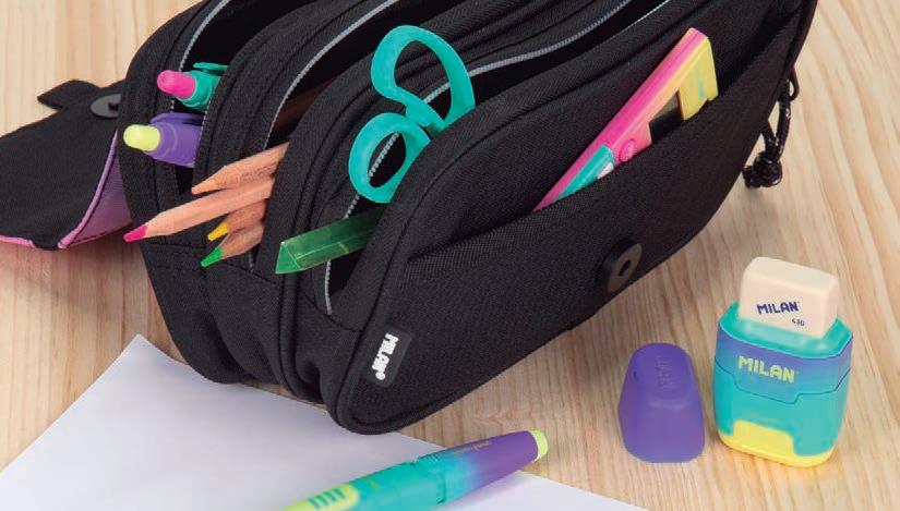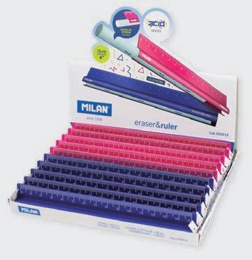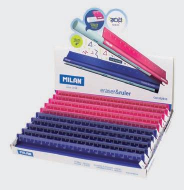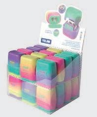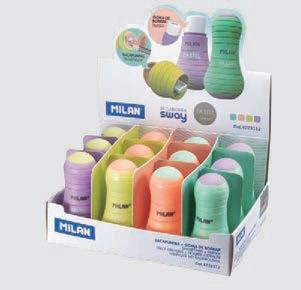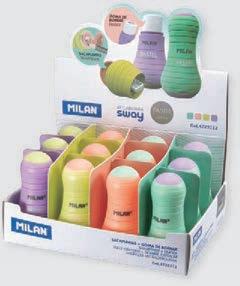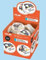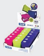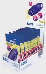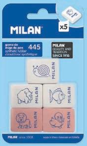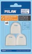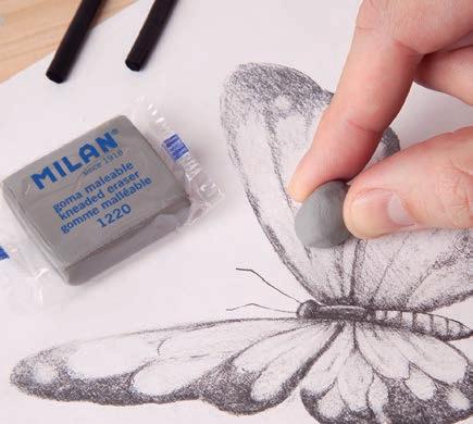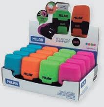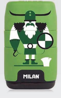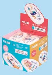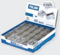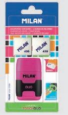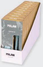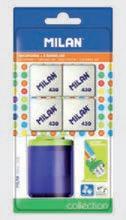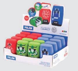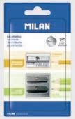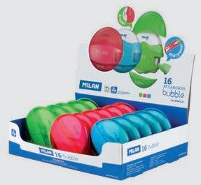 As borrachas com afia-lápis são um produto inovador desenvolvido pelo departamento de I+D que combina uma borracha MILAN com um apara-lápis com depósito. Diferentes linhas de design, séries e cores disponíveis.