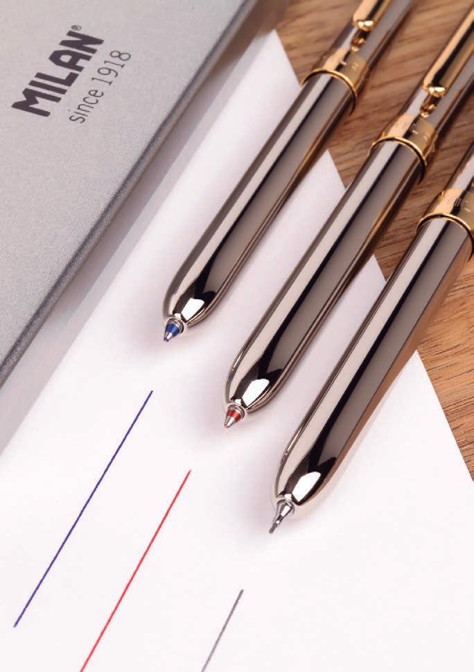 La vasta gamma di penne MILAN è stata progettata dal dipartimento I+D, registrando i propri brevetti. Design, qualità e funzionalità sono i valori che guidano la realizzazione delle penne MILAN, una categoria in piena crescita dal lancio della famiglia P1 nel 2009.