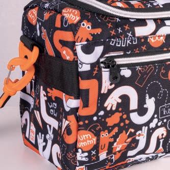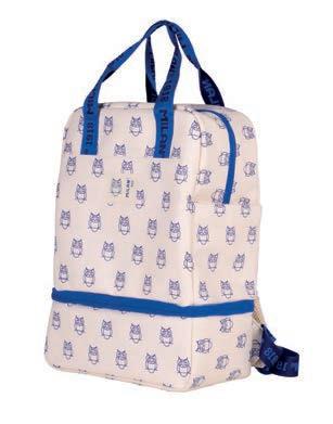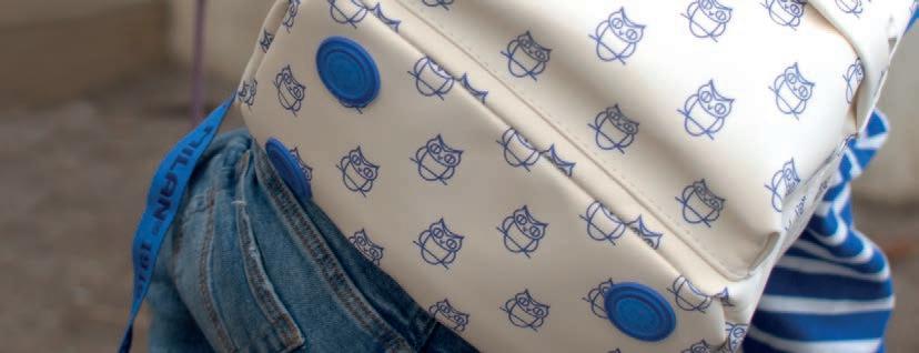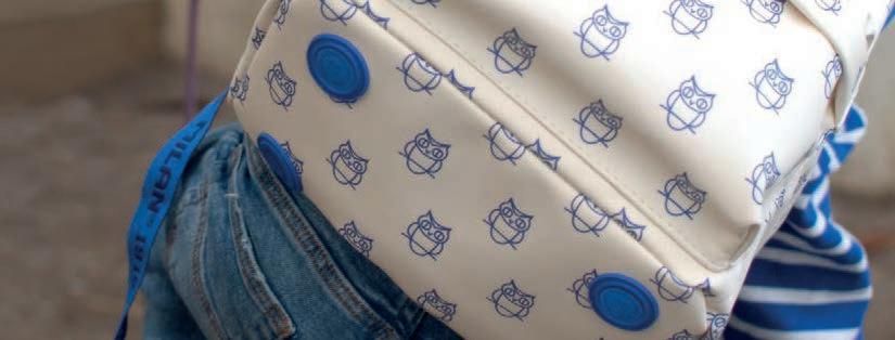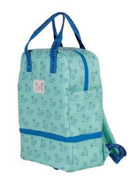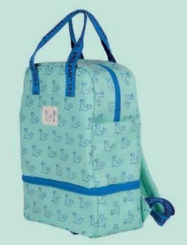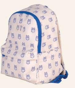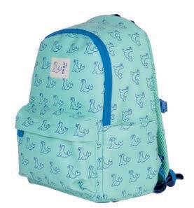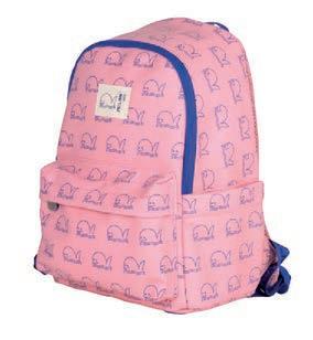 Zaini per bambini, astucci scolastici e borse porta alimenti ideali per i più piccoli. Stampa con foche, gufi e balene sui colori della gomma 460.