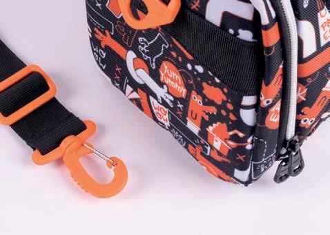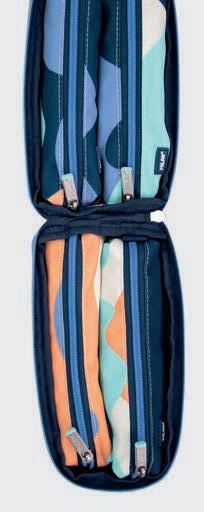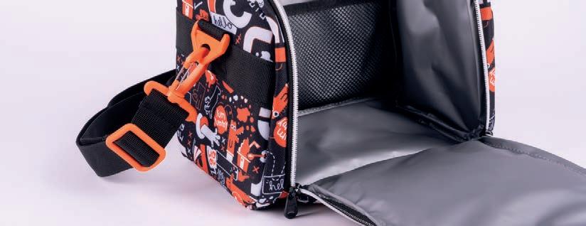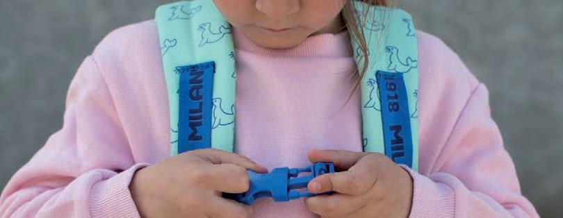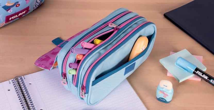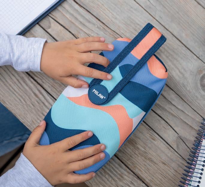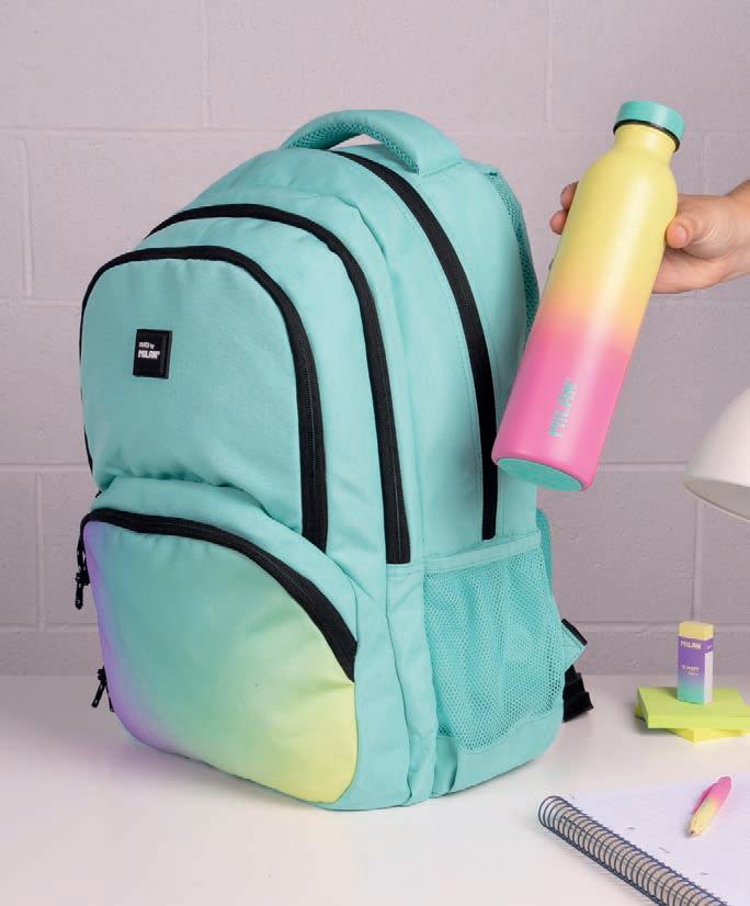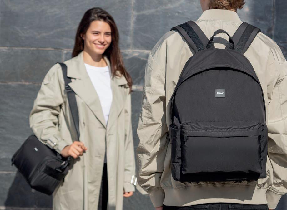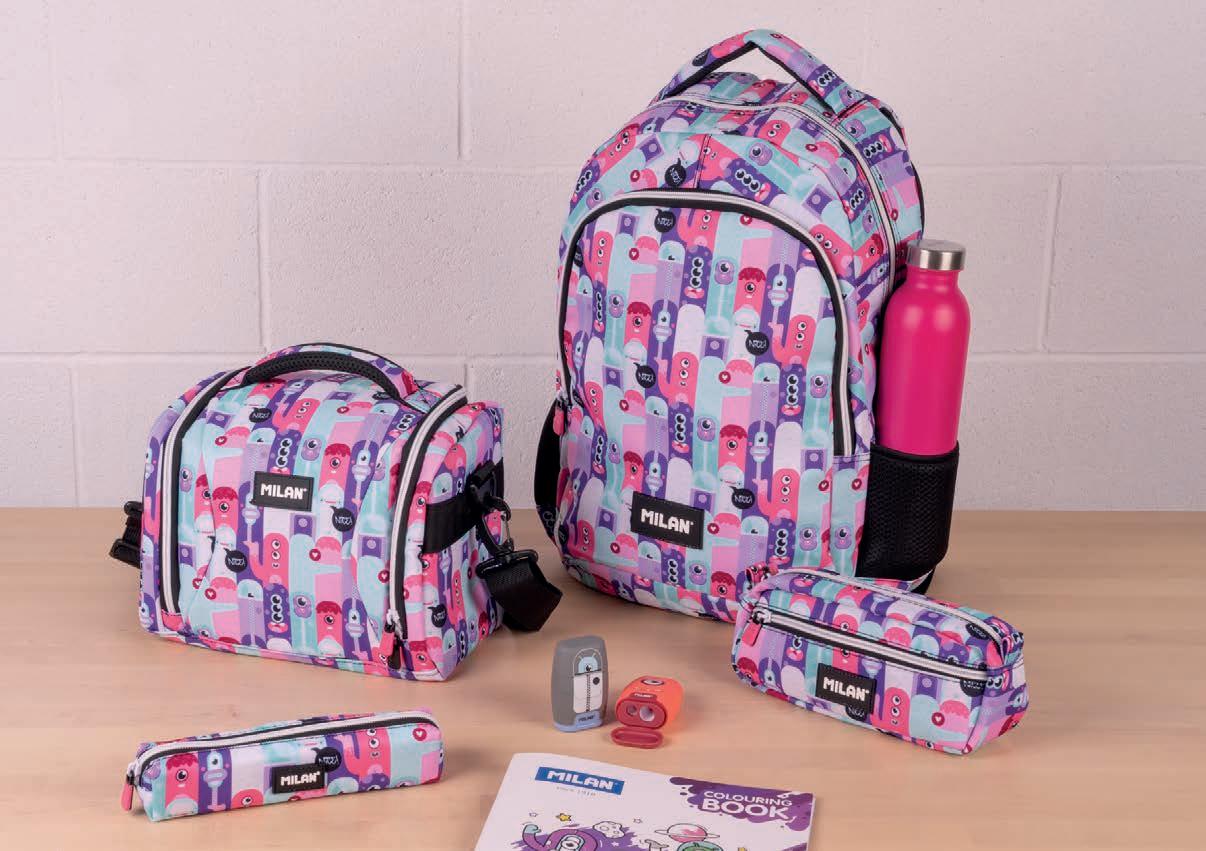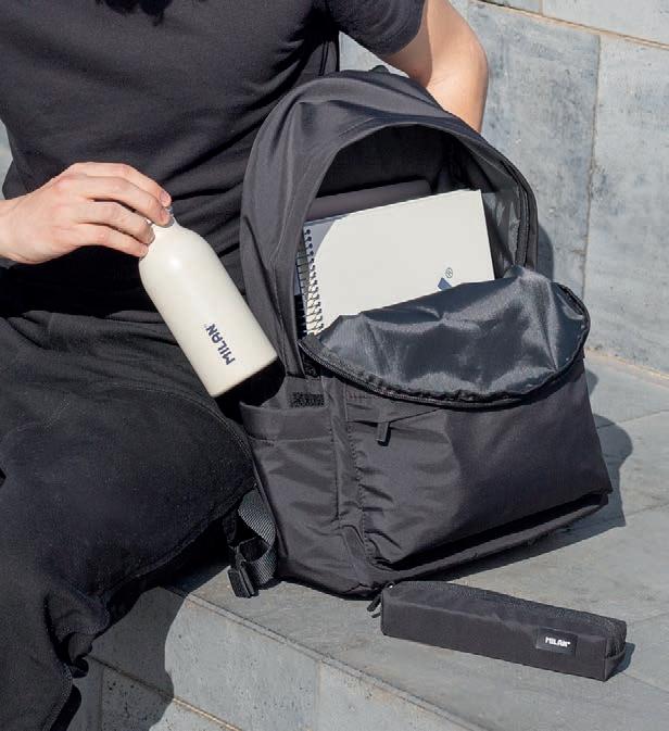 Esta série tem uma mochila, estojos, lancheiras e artigos de papelaria que proporcionam um caráter sóbrio e intemporal.