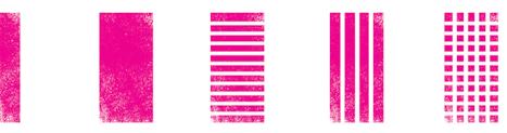 Una combinazione di colori sfumati ispirati al tramonto e affiancati da motivi geometrici in bianco e nero.